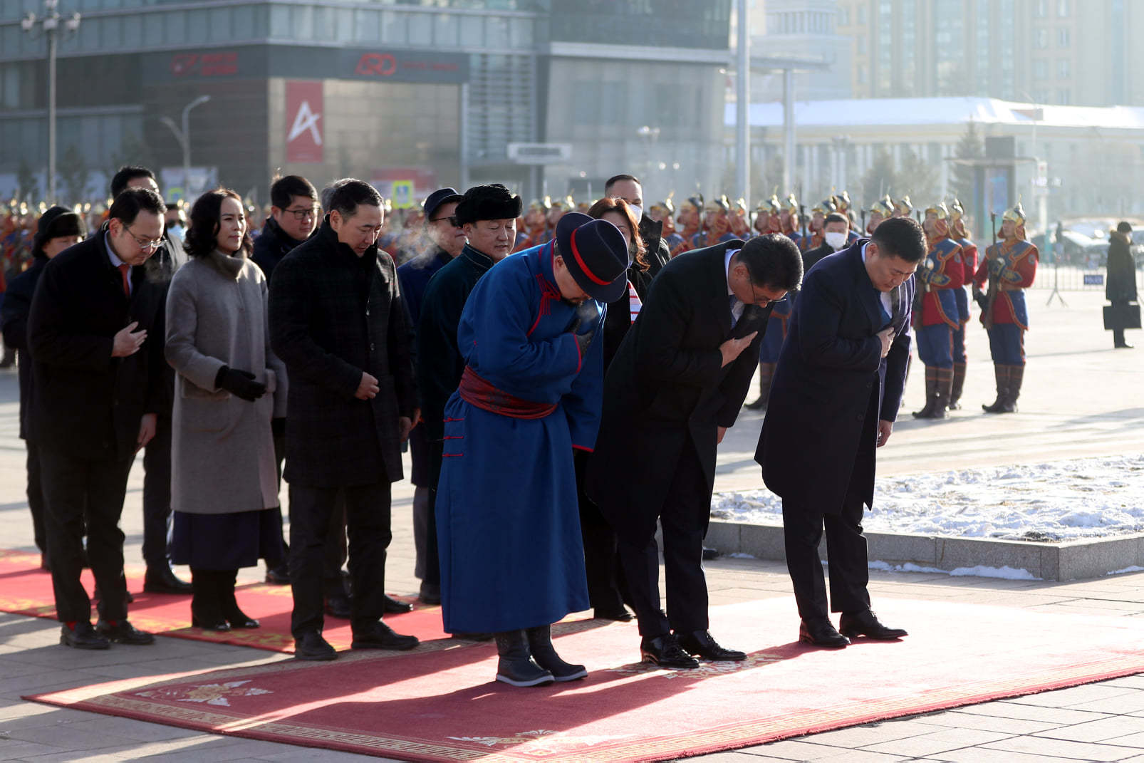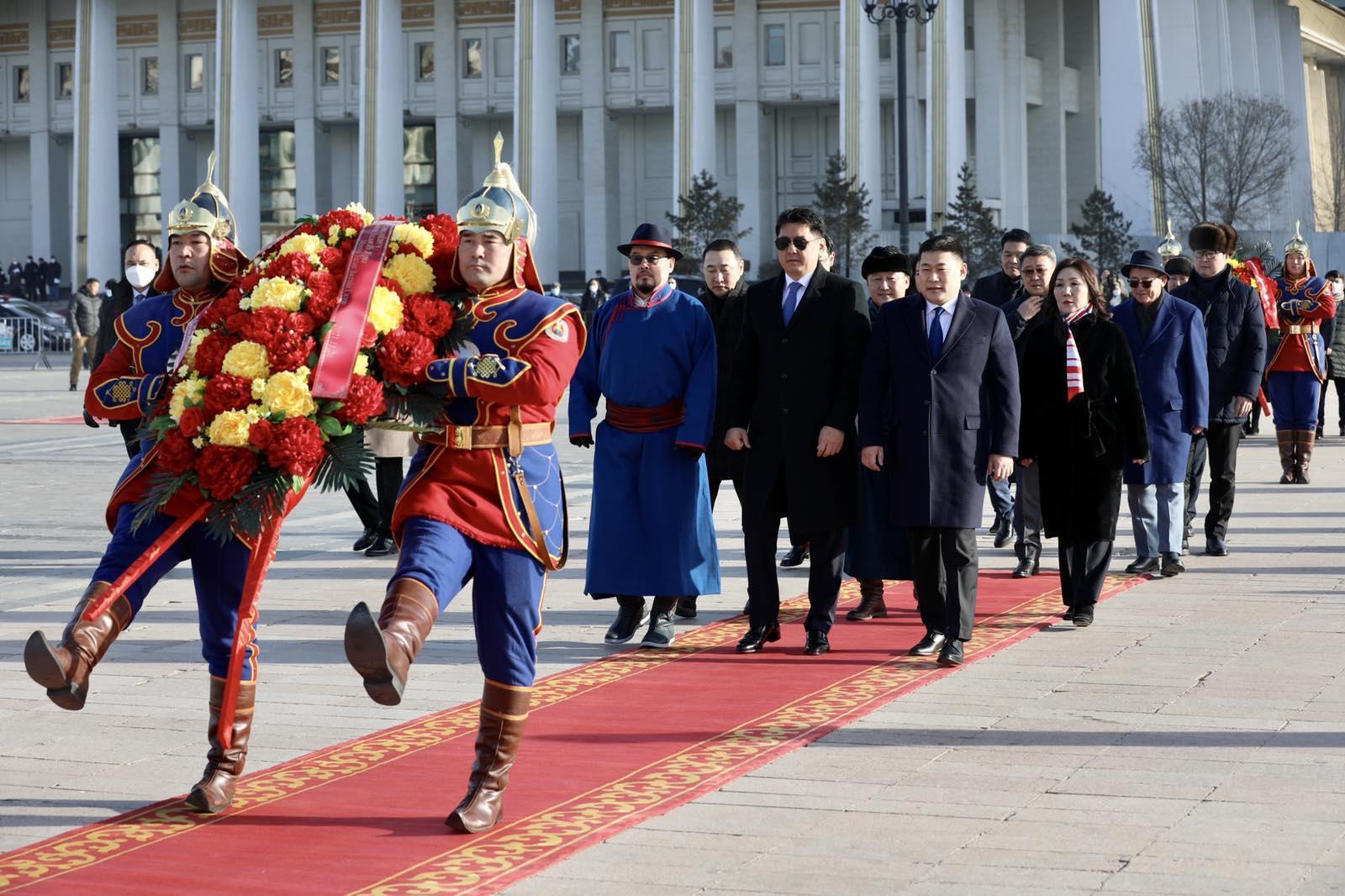 Сүхбаатарын хөшөөнд цэцэг өргөж, Чингисийн хөшөөнд хүндэтгэл үзүүллээ
