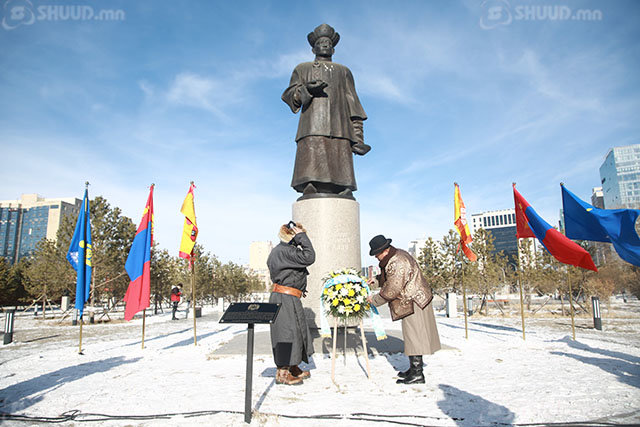 VIII Богд Жавзандамба хутагтын Монгол улсын тусгаар тогтнолд оруулсан түүхэн гавьяаг нь хүндэтгэн хөшөөнд хүндэтгэл үзүүлж, цэцэг өргөлөө.