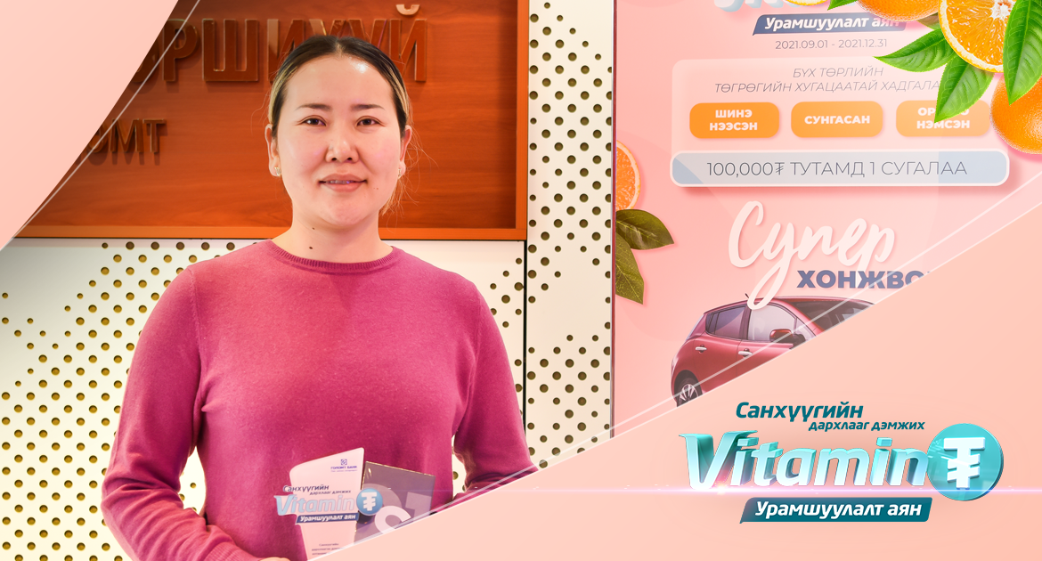 -“Витамин ₮” аяныг өнгөрсөн жил анх хэрэгжиж эхэлсэн цагаас нь мэддэг байсан. Харин энэ удаад би хадгаламждаа орлого нэмэхэд орлогын дүнгийн маань 100,000₮ тутамд 1 ширхэг сугалааны эрх үүссэн байсан. Тэгээд л оролцох эрхтэй болсон байсан.