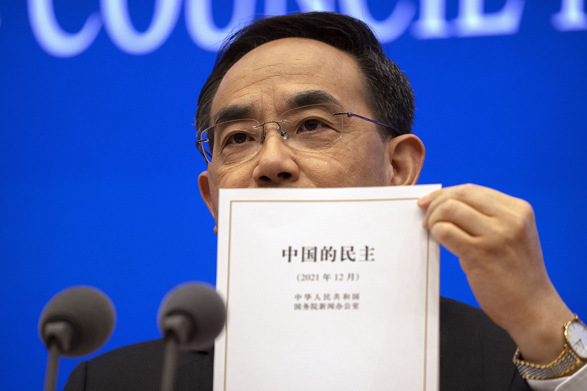 БНХАУ 12 дугаар сарын дөрөвний өдөр “Хятад: хэрэгждэг ардчилал” нэртэй Цагаан номоо нийтлэжээ. Энэхүү баримт бичиг нь “америк маягийн ардчилал”-ыг нутагшуулах гэсэн оролдлогод хариу өгч байгаа хэрэг гэдгээ Хятадын эрх баригчид нуусангүй.