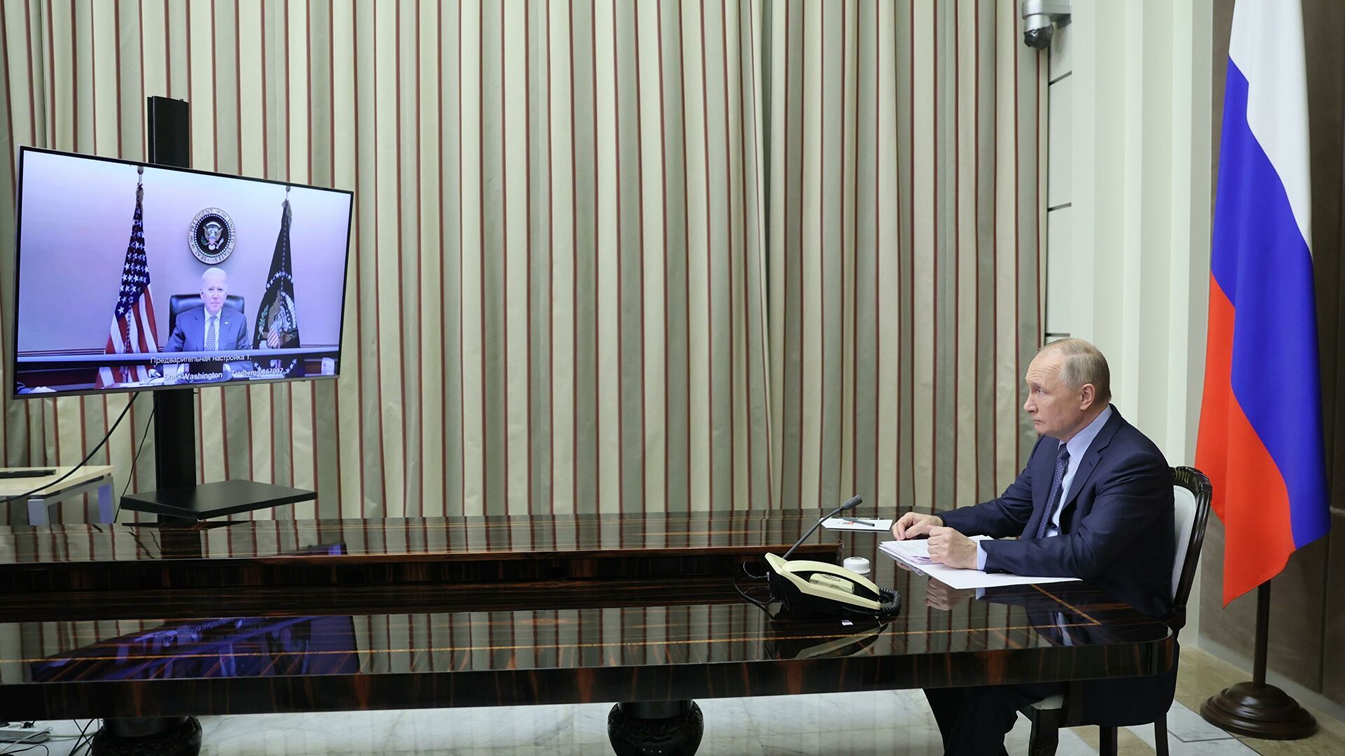 "Украиныг тойрон Орос улс цэргүүдээ байршуулсантай холбоотойгоор АНУ болон Европын холбоотнууд санаа зовниж байгааг Байден илэрхийлээд АНУ болон манай холбоотнууд нөхцөл байдал хурцадвал эдийн засгийн болоод бусад шийдэмгий арга хэмжээгээр хариу барина гэдгийг цохон тэмдэглэсэн" хэмээн уулзалтын дүнгээр гаргасан Цагаан ордны мэдэгдэлд өгүүлжээ.