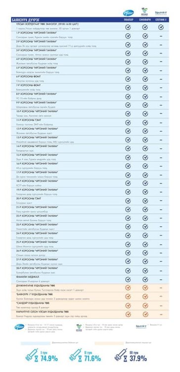 Өнөөдөр Улаанбаатар хотод 172 суурин, 14 явуулын, 15 түр цэгт 203 багийн 870 эмч, ажилтан ажиллаж, 8400 иргэнийг дархлаажуулахаар төлөвлөлөө. Томоохон зах, худалдааны төвд 15 түр цэг, их, дээд сургуулиудад 14 явуулын баг ажиллана.