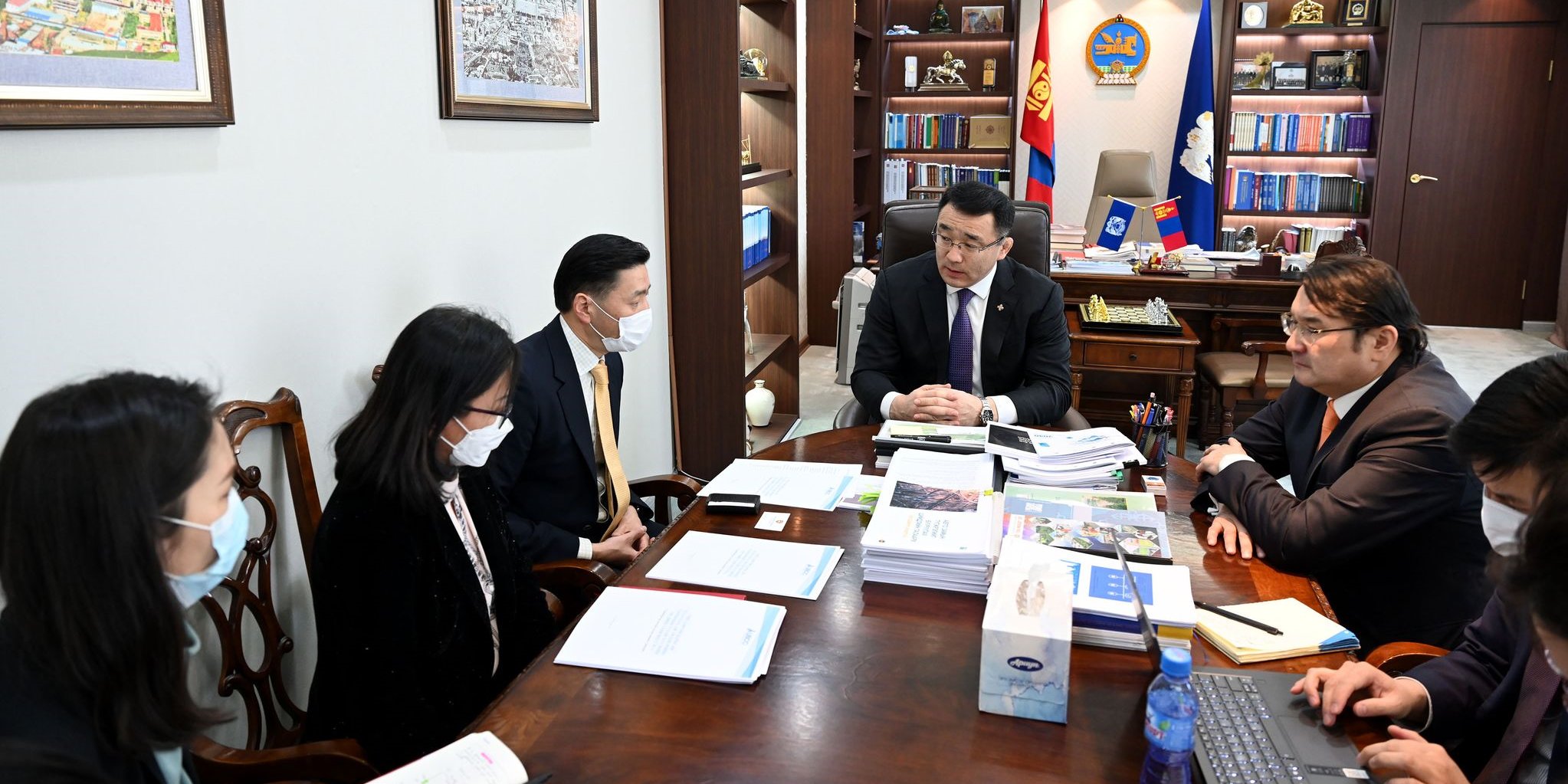 Нийслэлийн Засаг дарга бөгөөд Улаанбаатар хотын Захирагч Д.Сумъяабазар Улаанбаатар хотын Худалдааны танхимын төлөөллүүдийг өнөөдөр хүлээн авч уулзлаа. Уулзалтад Улаанбаатар хотын Худалдааны танхимын ерөнхийлөгч А.Ганхуяг, гүйцэтгэх захирал Б.Хаш-Эрдэнэ, Нийслэлийн Засаг даргын Төсөв, санхүү хариуцсан зөвлөх Д.Батмөнх, НЗДТГ-ын Төсөл, хөтөлбөрийн хяналт, зохицуулалтын хэлтсийн дарга М.Аясгалан тэргүүтэй холбогдох албаныхан оролцсон юм.