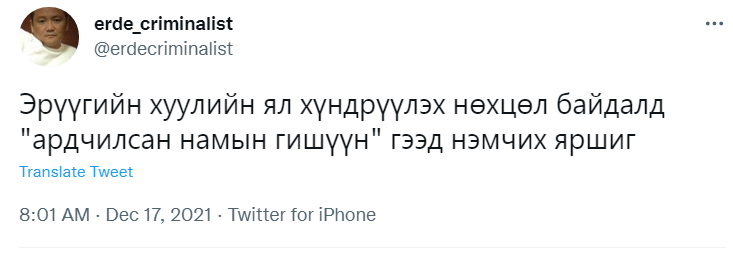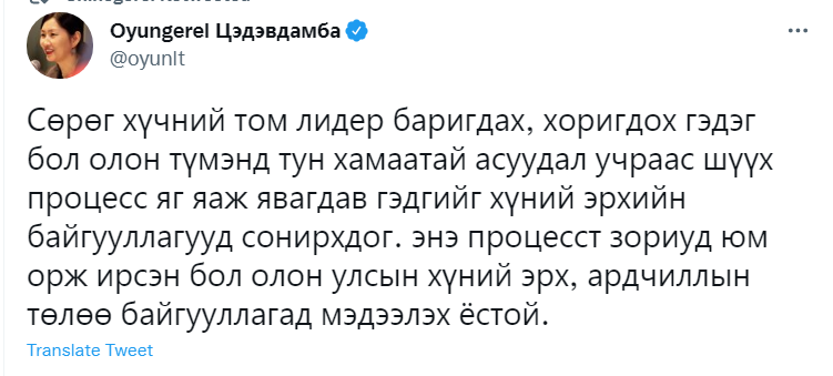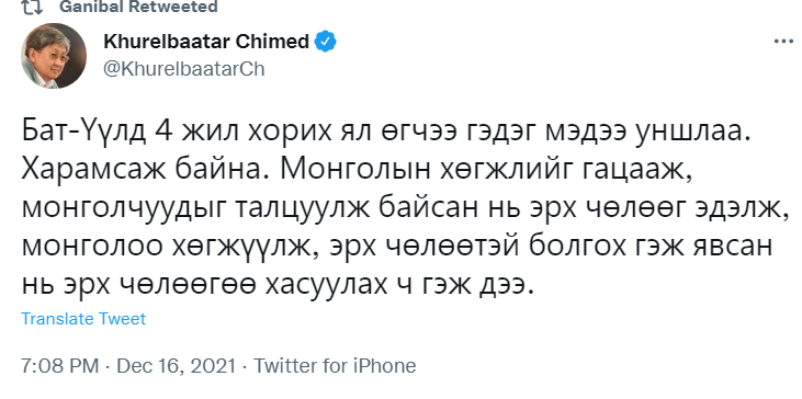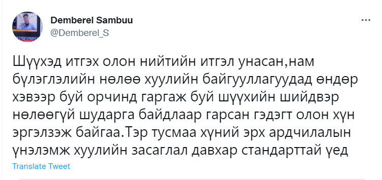 Хотын дарга асан Э.Бат-Үүлийг хорилоо. Түүнийг эрх мэдлээ урвуулан ашиглаж, их хэмжээний хохирол учруулсан хэмээн дөрвөн жилийн хорих ял оноож, нийтийн албанд томилогдох эрхийг 3 жилээр хасав. Багагүй хугацаанд үргэлжилсэн хууль хяналтын байгууллагын шалгалтын эцсийн үр дүн олон хүнийг бухимдуулж, бас цөөнгүй иргэдийн гайхшралыг төрүүлэв. Тэгвэл олны танил эрхмүүд, улс төрийн хүрээнийхэн энэ хэргийн талаар юу хэлснийг хүргэж байна.