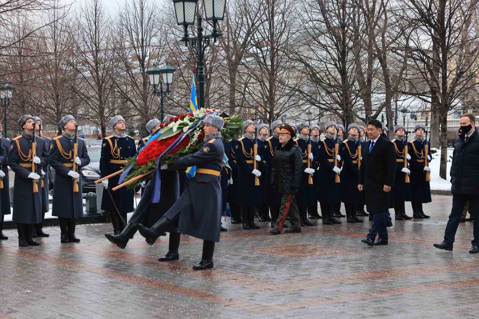 Оросын Холбооны Улсад албан ёсны айлчлал хийж байгаа Монгол Улсын Ерөнхийлөгч У.Хүрэлсүх 2021 оны 12 дугаар сарын 17-ны өдөр “Нэр нь үл мэдэгдэх цэргийн хөшөө”-нд цэцэг өргөж, хүндэтгэл үзүүлэв.