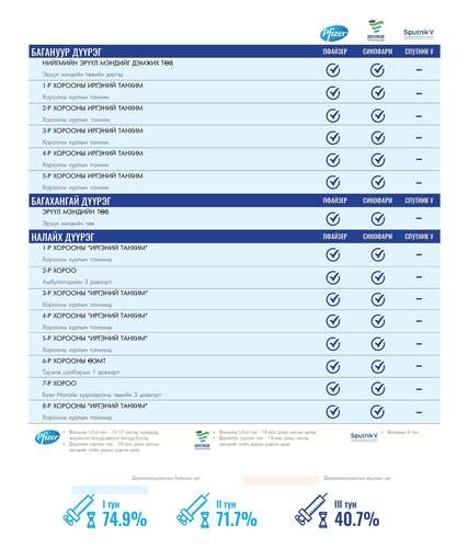 Өнөөдөр Улаанбаатар хотод 172 суурин, 14 түр цэгт 188 багийн 866 эмч, ажилтан ажиллаж, 6000 иргэнийг дархлаажуулахаар төлөвлөлөө. Томоохон зах, худалдааны төвд 14 түр цэг ажиллана. Та өөрт ойр вакцины аль ч цэгт очиж дархлаажуулалтад хамрагдах боломжтой. Дархлаажуулалтын цэгүүд 09:00-20:00 цаг хүртэл ажиллана.