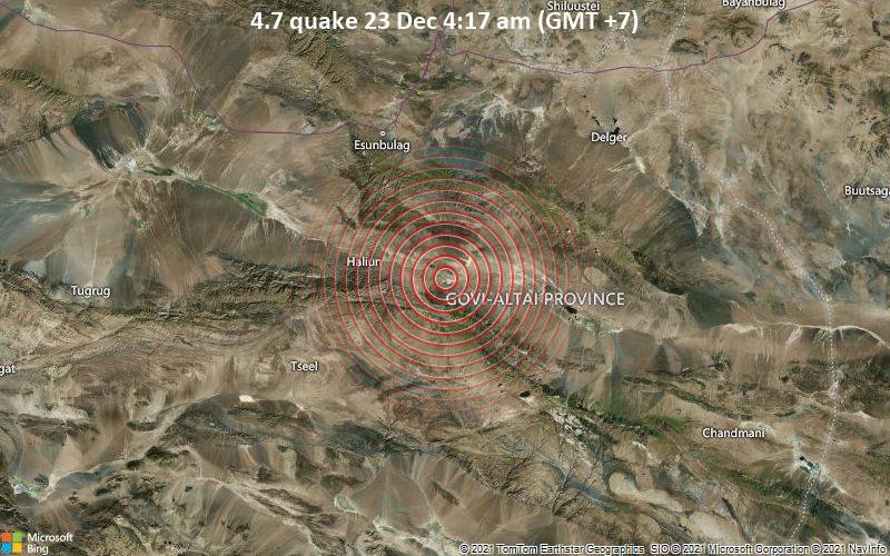 Пүрэв гаригийн өглөө Говь-Алтай аймгийн Есөнбулаг сумын нутагт 4,7 магнитудын хүчтэй газар хөдлөлт бүртгэгджээ.