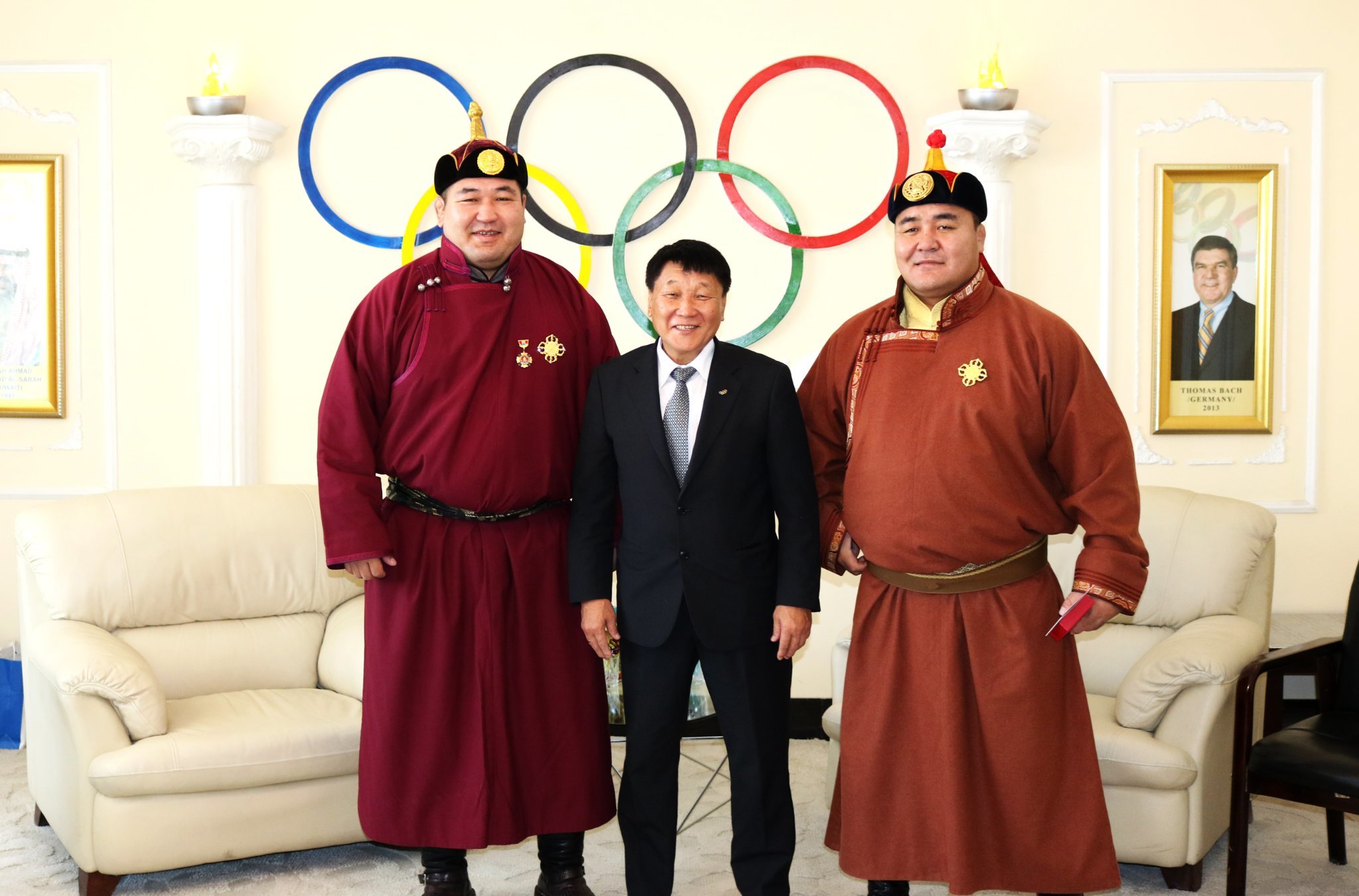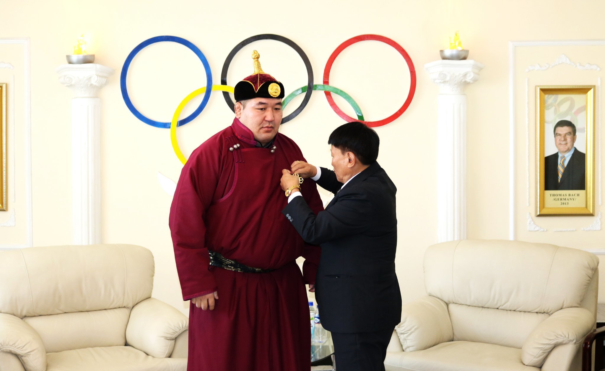 Монгол Улсын аварга Ч.Санжаадамба, С.Мөнхбат нарыг МҮОХ-ны “Алтан очир” одонгоор шагналаа. Шагналыг МҮОХ-ны ерөнхийлөгчийн үүрэг гүйцэтгэгч Ч.Наранбаатар гардуулав. Энэ үеэр Ч.Наранбаатар дарга аваргуудтай монгол үндэсний бөх, цаашлаад спортын салбар дахь цэвэр ариун өрсөлдөөнийг бий болгох, допингоос ангид байлгах чиглэлээр ямар ажил хийж хэрэгжүүлэх талаар санал солилцов.