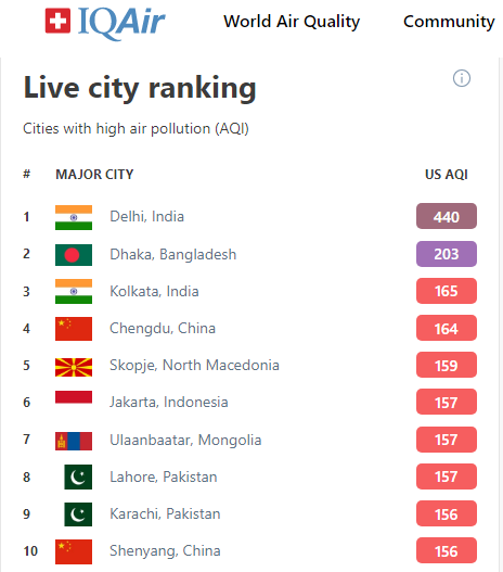 Агаарын чанарын үнэлгээг гаргадаг www.iqair.com сайт дэлхийн хотуудыг агаарын бохирдлоор нь жагсаан, өдөр тутам шинэчилдэг. Энэ жагсаалтад манай улсын нийслэл Улаанбаатар хот эхний 10-т байнга бичигдсээр байна.