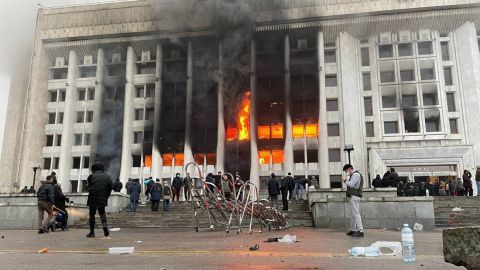 Алматы хотод эсэргүүцэгчид захиргааны байрыг шатааж, Ерөнхийлөгчийн ордон руу дайрав. Алматы дахь Ерөнхийлөгчийн ордон галд автаж, буун дуу гарсан гэж ТАСС агентлаг мэдээлсэн юм. Казахстан даяар интернет тасалж, Алматы болон Нур-Султан хотод үүрэн холбооны сүлжээ тасарчээ. Улмаар цахим хэвлэлүүд ажиллах боломжгүй болжээ. Улаанбаатарын цагаар 22.00 цагийн байдлаар интернет тасалдсаны улмаас Казахстаны гол цахим хэвлэлүүд ажиллах боломжгүй болсон байв. Эмх замбараагүй байдал даамжирсан тул нийслэлийг оролцуулаад нийт дөрвөн бүс нутагт онц байдал тогтоосон байна.