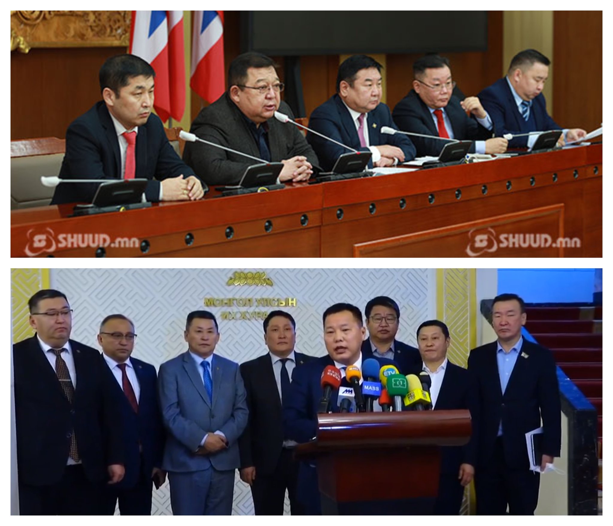 Харин өнөөдөр “хөөгдсөн” бүлгийн дарга Д.Ганбат, АН-ын “дарга” С.Эрдэнэ, нарийн бичгийн дарга О.Баасанхүү нар мөн л Төрийн ордонд хэвлэлийн хурал хийлээ. Тэд “О.Цогтгэрэл нарын гишүүд Улсын дээд шүүхийн тогтоолыг мушгин гуйвуулж, ард түмэнд буруу мэдээлэл өгсөн” гэж бүлгийн гишүүдийн мэдээллийг үгүйсгэлээ.