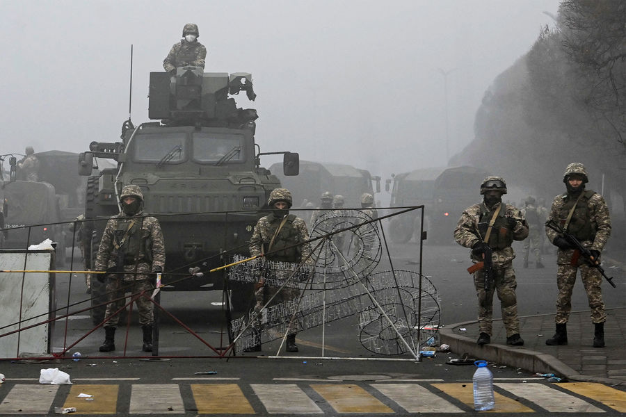 Одоо энэ улсад Хамтын аюулгүй байдлын гэрээний байгууллагын энхийг сахиулагчид үүрэг гүйцэтгэж байна. Энэ байгууллагад Казахстан улс гишүүн орныхоо хувиар нэгдүгээр сарын тавны өдөр дэмжлэг хүсэн хандсан. Ингээд ХАБГБ Казахстан руу энхийг сахиулагчдыг илгээхээр болсноор нэгдүгээр сарын зургааны өдрөөс эхлэн Оросын цэргүүд Казахстаныг зорьсон юм. Энхийг сахиулагчид нэн чухал цэргийн, төрийн, нийгмсийн объектуудыг хамгаалах бөгөөд тус улсад нөхцөл байдал тогтворжих хүртэл үүрэг гүйцэтгэх юм байна.