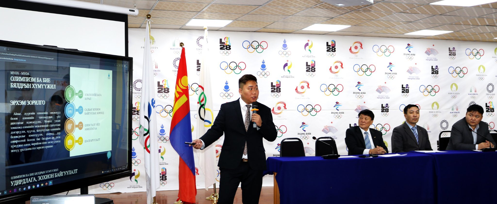 МҮОХ Монголын үндэсний олимпын академитай хамтран улсын хэмжээний бүх ерөнхий боловсролын сургуулийн дунд зарласан “Олимпын боловсрол ба бие бялдрын хүмүүжил” сэдэвт болзолт уралдааны талаарх мэдээллийг сэтгүүлчдэд өглөө. Тус хэвлэлийн хуралд МҮОХ-ны ерөнхийлөгчийн үүрэг гүйцэтгэгч Ч.Наранбаатар, Монголын үндэсний олимпын академийн дэд ерөнхийлөгч Б.Буяндэлгэр, Нийслэлийн боловсролын газрын Биеийн тамирын боловсрол, удирдлагын бодлого төлөвлөлт хариуцсан мэргэжилтэн А.Гантулга, МҮОХ-ны Олимпын боловсрол хариуцсан мэргэжилтэн З.Гомбодорж нар оролцов.