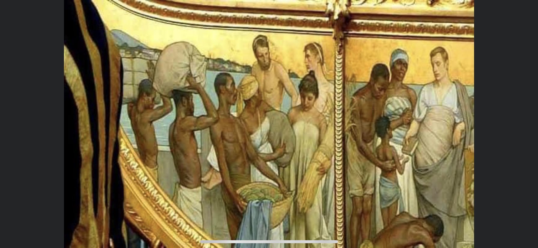 Сүйх тэрэгний нэг талд "Колони улсаас барьсан өргөл" нэртэй зураг байдаг бөгөөд энэ зурган дээр өнгөт арьстнууд болон азиуд дүрслэгдсэн байдаг гэнэ. Тэдний нэг нь өвдөглөн суугаад, Нидерландыг бэлгэдсэн цагаан арьст эмэгтэйд бараа санал болгож байгаагаар дүрслэгдсэн аж.