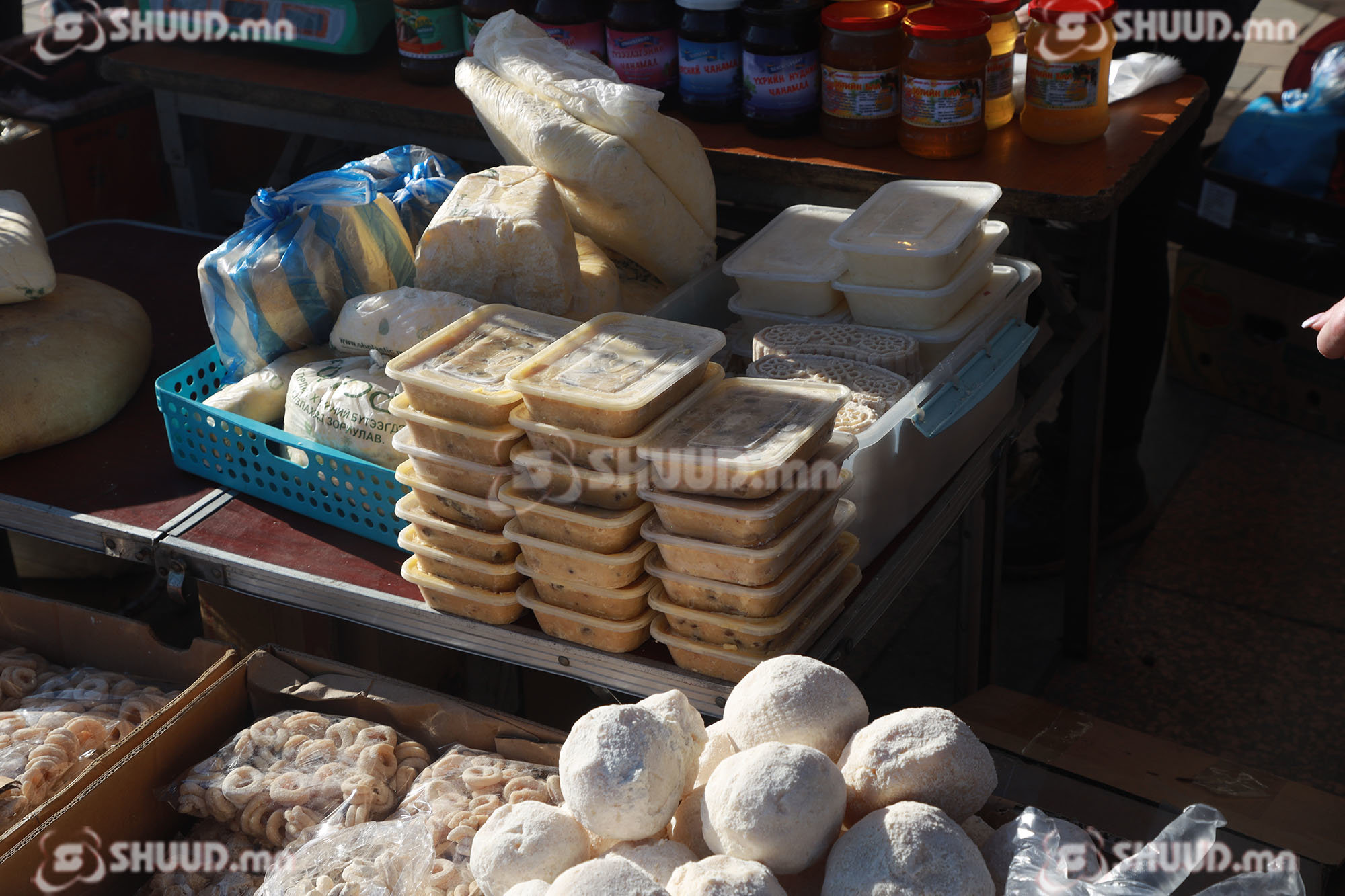 -Сар шинийн баярын тавганы ааруул цагаан идээгээ аваад явж байна. Бүтээгдэхүүний зарим нь үнэтэй, зарим нь гайгүй хямд байна.