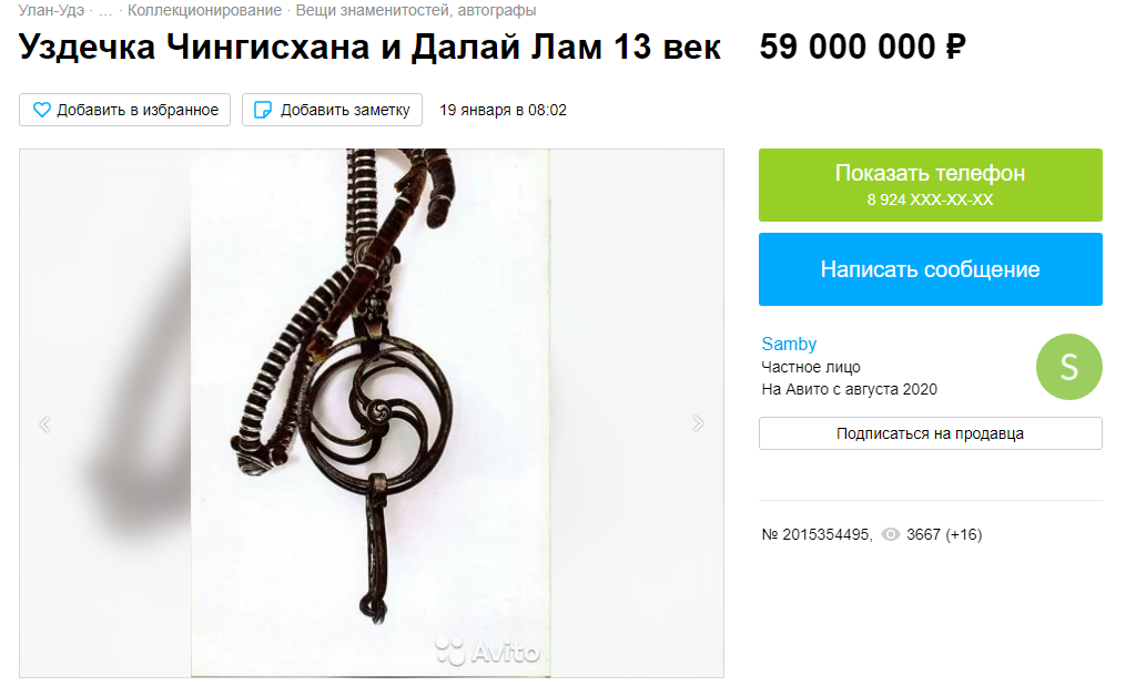 "Чингисийн хазаар зарна" гэсэн зар Буриадын сайтад нийтлэгджээ