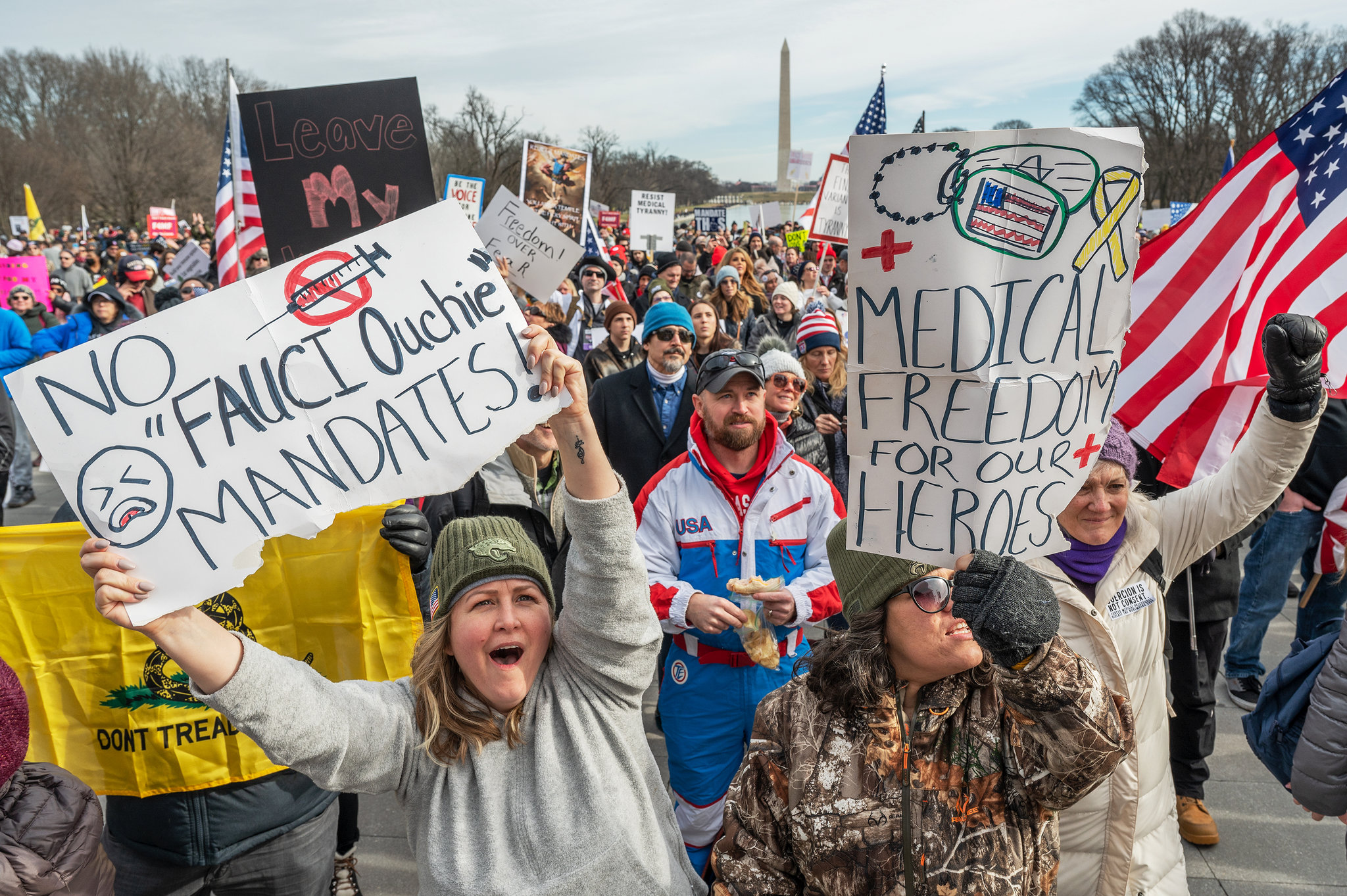 Харин үүнийг эсэргүүцсэн олон мянган хүн ням гаригт Вашингтоны төвд эсэргүүцлийн жагсаал зохион байгуулсан байна. ВВС агентлагийн мэдээлснээр, цугласан олны ихэнх нь амны хаалтгүй байсан гэнэ. Мөн зарим хүмүүс Байденыг огцрохыг уриалсан зурагт хуудас барин жагсжээ.