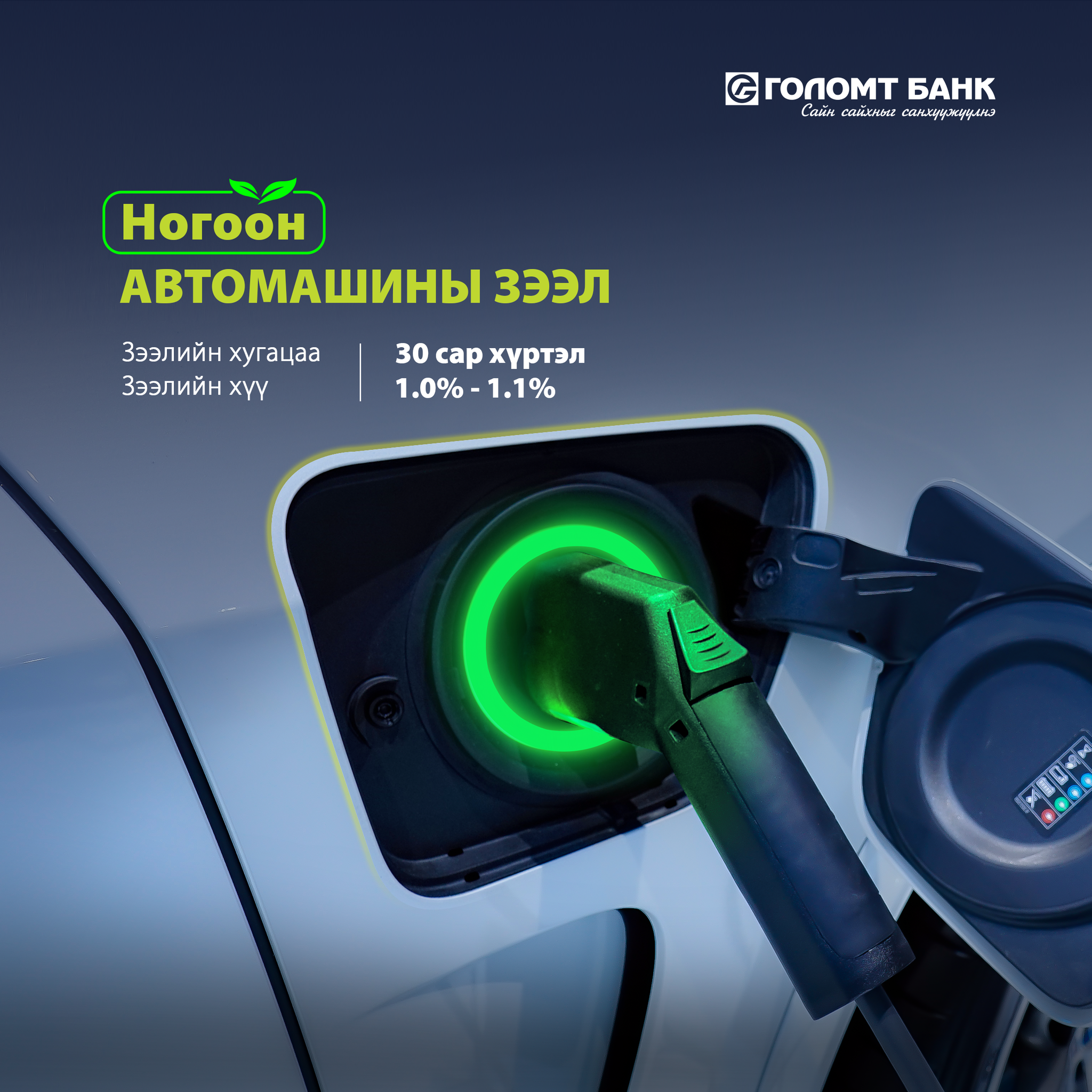 Хүрээлэн буй орчинд ээлтэй ногоон автомашинд зориулсан зээл дээр танай компани Голомт банктай хамтран ажиллаж байгаа шүү дээ. Ногоон зээлд хамрагдах хүсэлтэй хүмүүст хандаад мэдээлэл өгвөл?