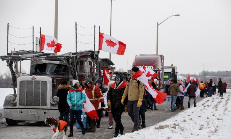 АНУ-ын хил нэвтрэхэд вакцины гэрчилгээ шаардах журмыг эсэргүүцэж буй Канадын тээвэрчдийн авто цуваа нэгдүгээр сарын 27-ны өдөр Канадын Онтарои мужийн Торонто хотод иржээ. Энэ талаар CTV суваг мэдээлсэн байна.