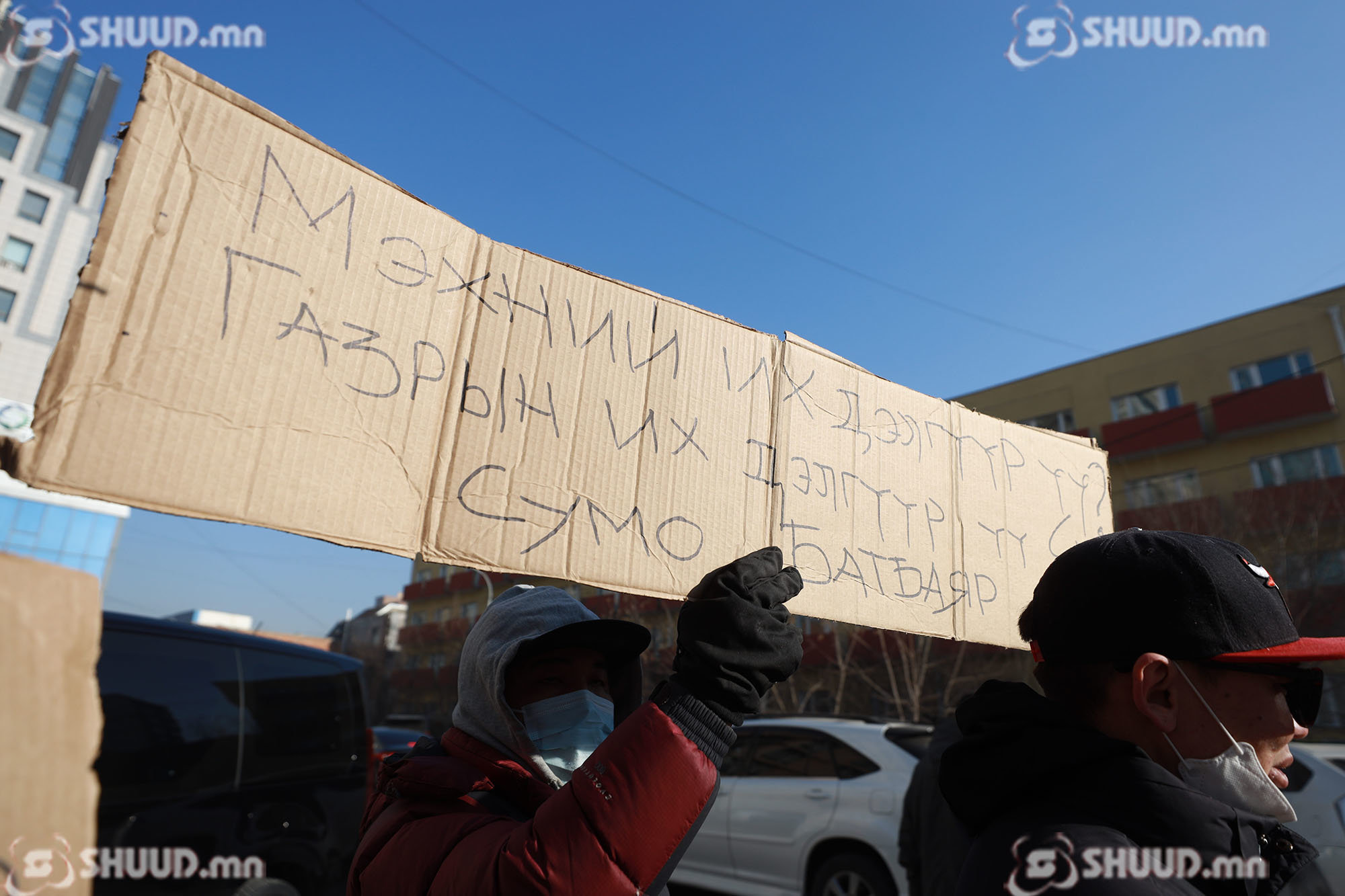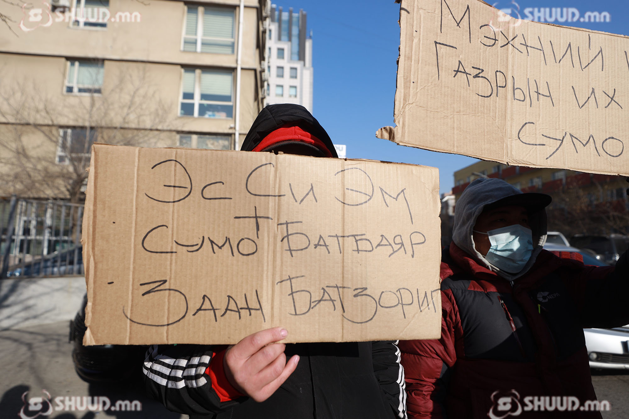 Яармагийн иргэд нийслэлийн захиргааны хэргийн шүүхийн гадаа цуглажээ. Тэд улсын заан Ч.Батзориг, Кёкүшюзан Д.Батбаяр нар хууль бусаар газар эзэмшиж, барилга барих гэж буйг эсэргүүцэж байна.