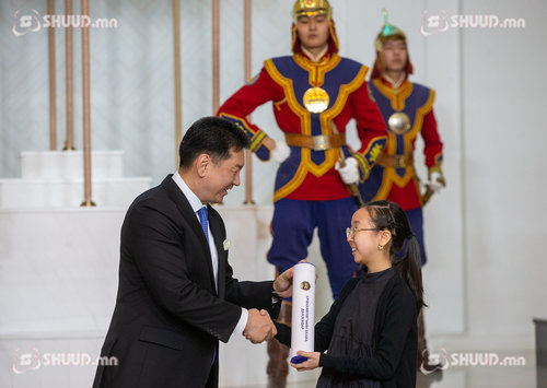 Монгол Улсын Ерөнхийлөгч У.Хүрэлсүх "Илгээлт-2100" хөтөлбөрт хамрагдах болзол хангасан 428 хүүхдэд захиа, даалгавар гардууллаа.