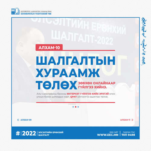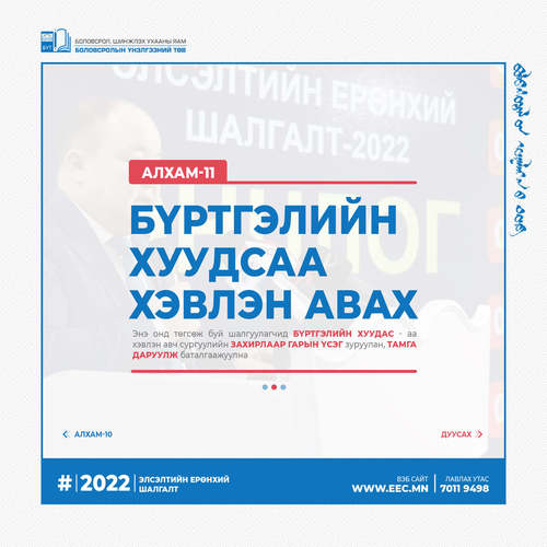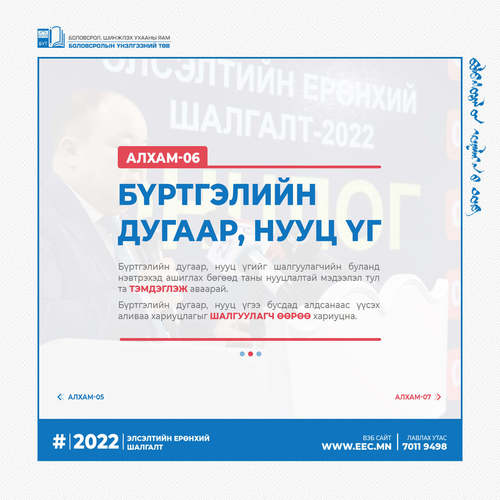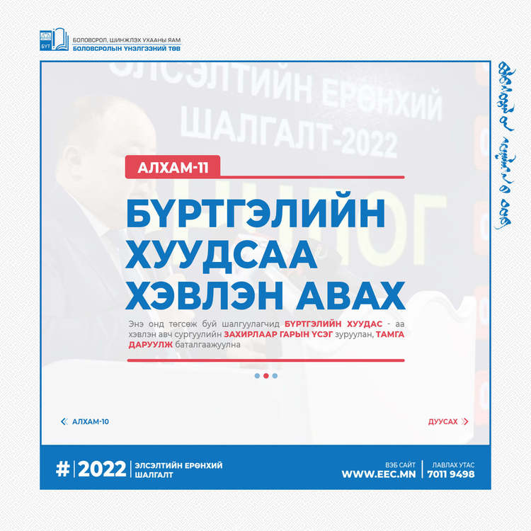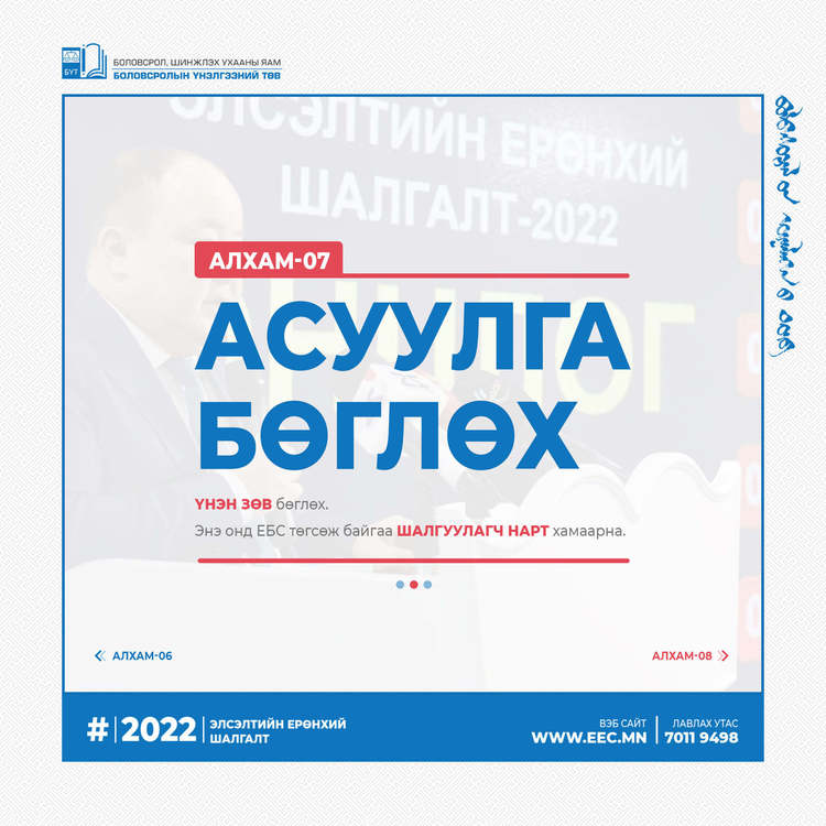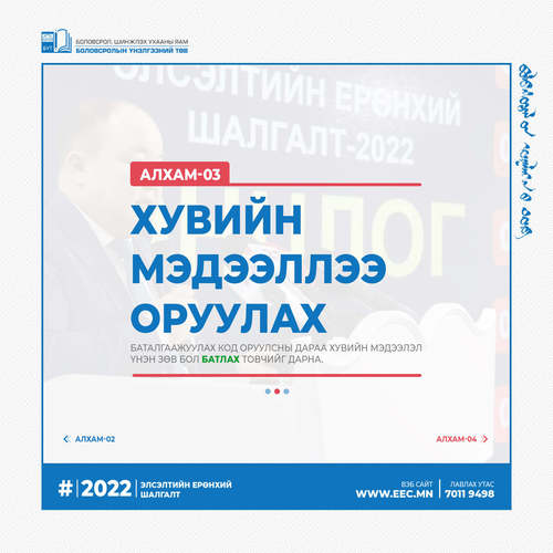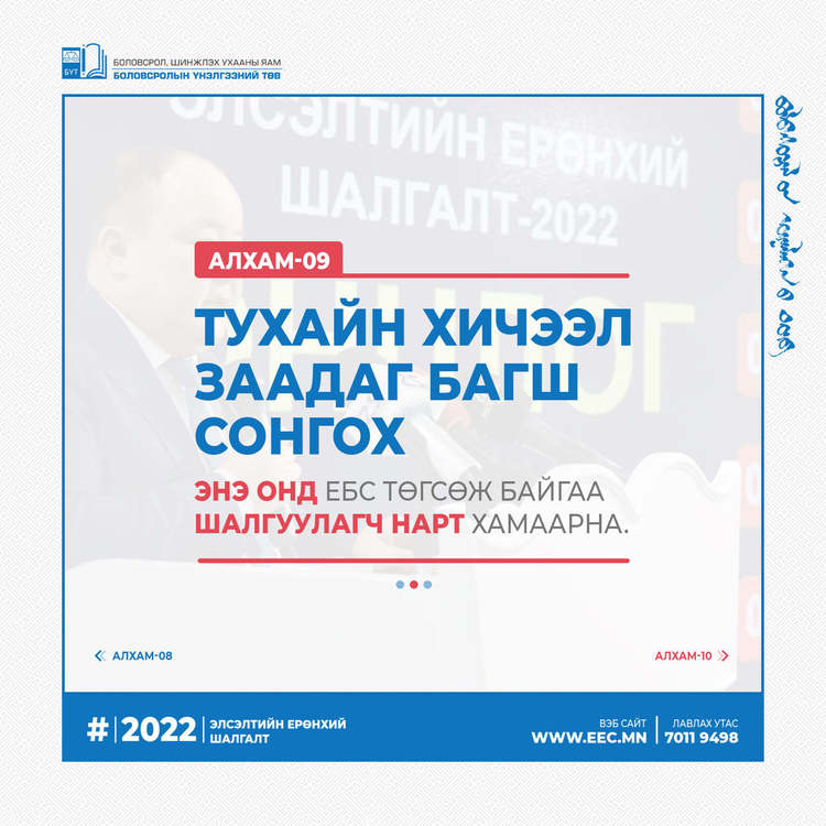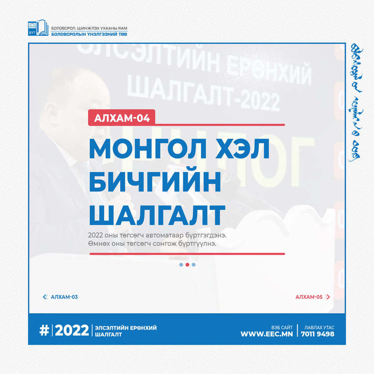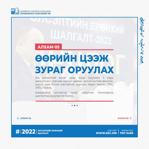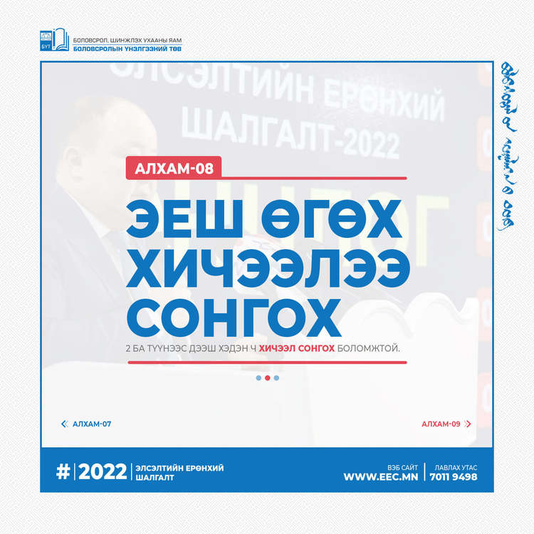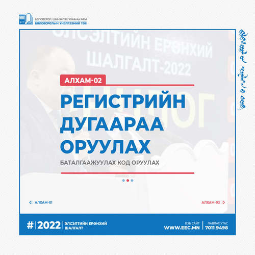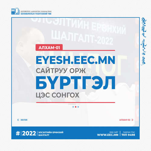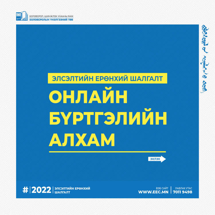 2022 оны Элсэлтийн ерөнхий шалгалтын бүртгэл эхэлсэнтэй холбогдуулан бүртгэлийн алхмыг танилцуулж байна.