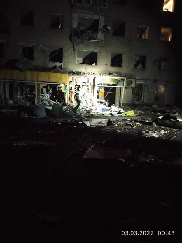 Өнгөрсөн шөнийн довтолгооны улмаас хотын төв ихээхэн сүйдсэн бөгөөд нэг сум засгийн газрын барилгыг онож, хэд хэдэн цагдаа шархадсан гэж Изюм хотын дарга өгүүлжээ.