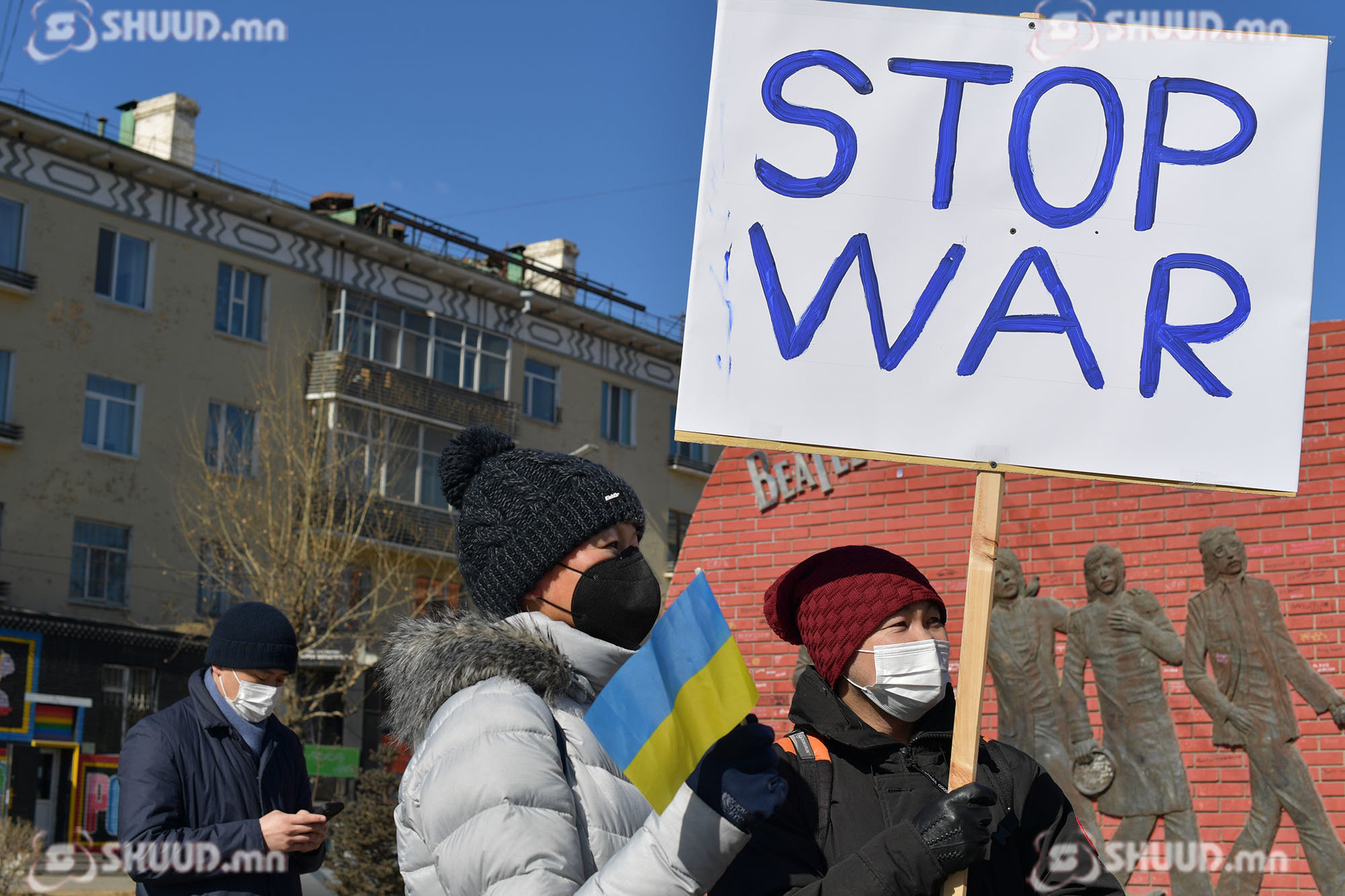Монголд амьдардаг Украины иргэд тайван цуглаан хийж байна.