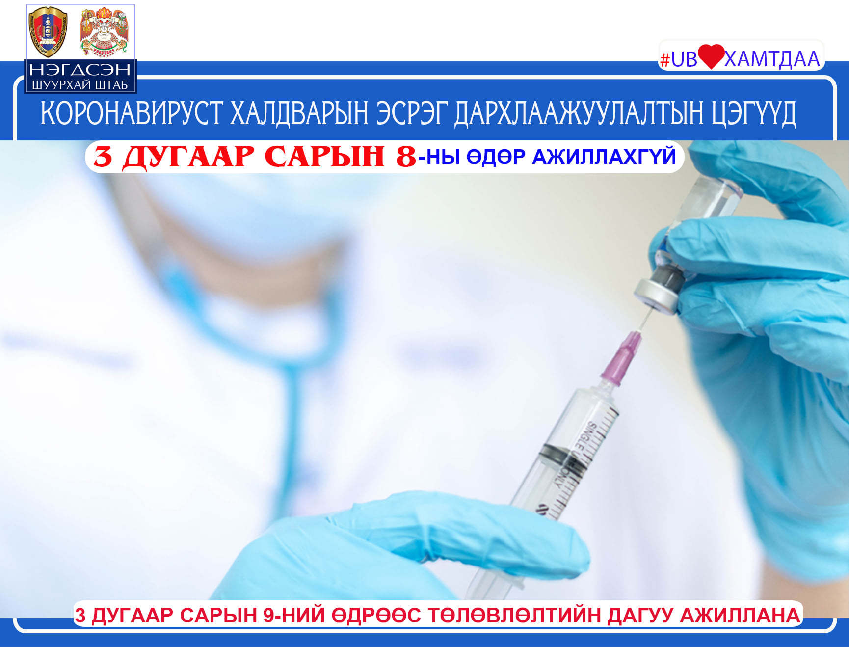 Өнөөдөр дархлаажуулалтын цэгүүд ажиллахгүй. Маргаашаас төлөвлөлтийн дагуу ажиллана.