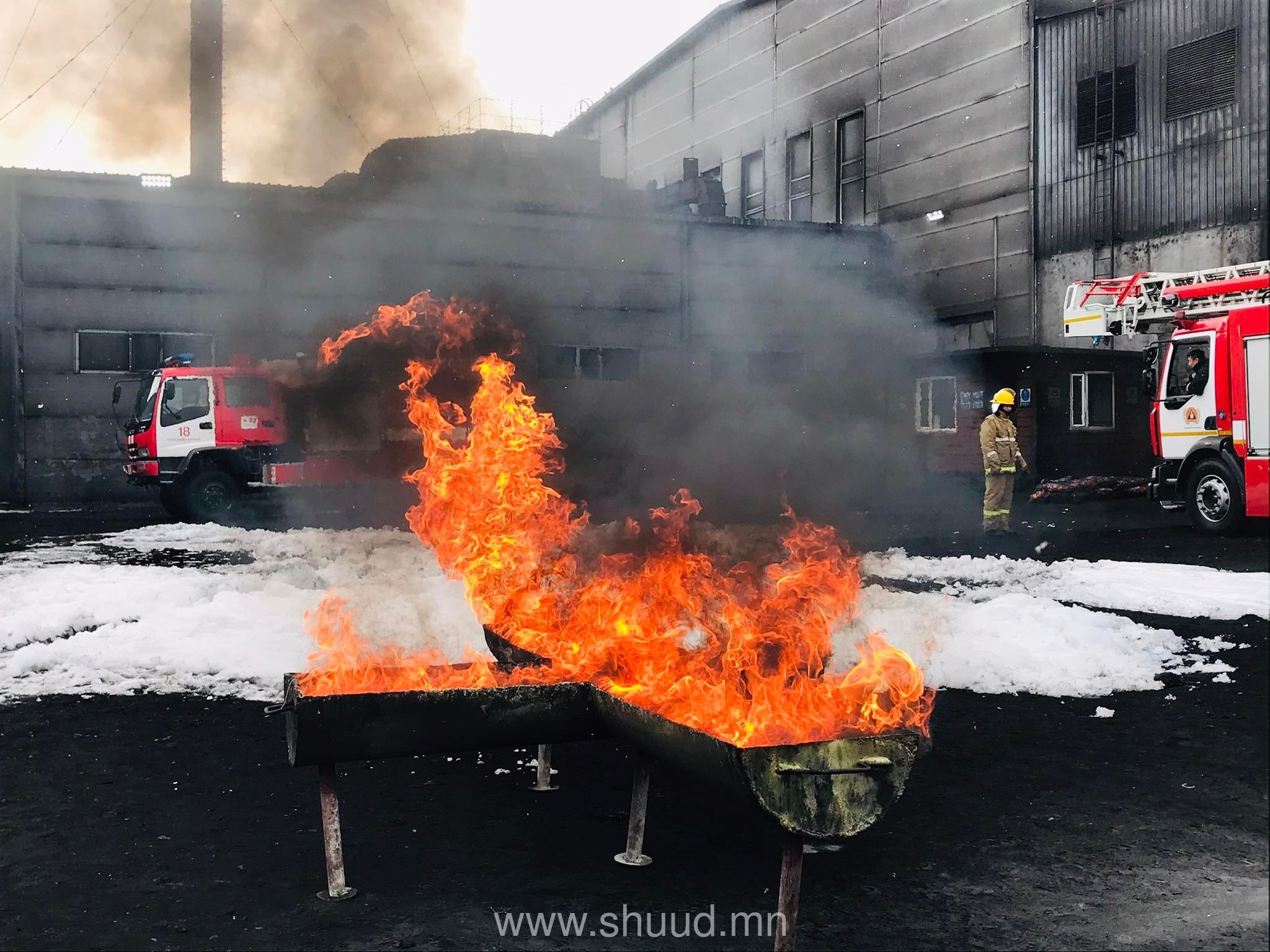 Энэ бол “Таван толгой түлш” ХХК-ийн баруун бүсийн IV үйлдвэрийн байранд зохион байгуулагдсан “Гал түймэр унтраах тактикийн сургууль” байв.