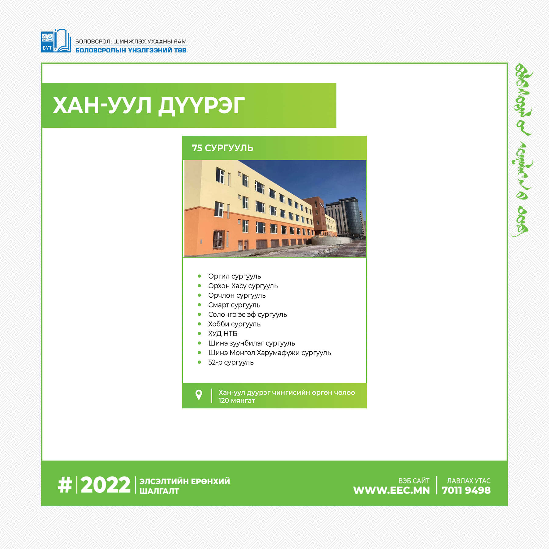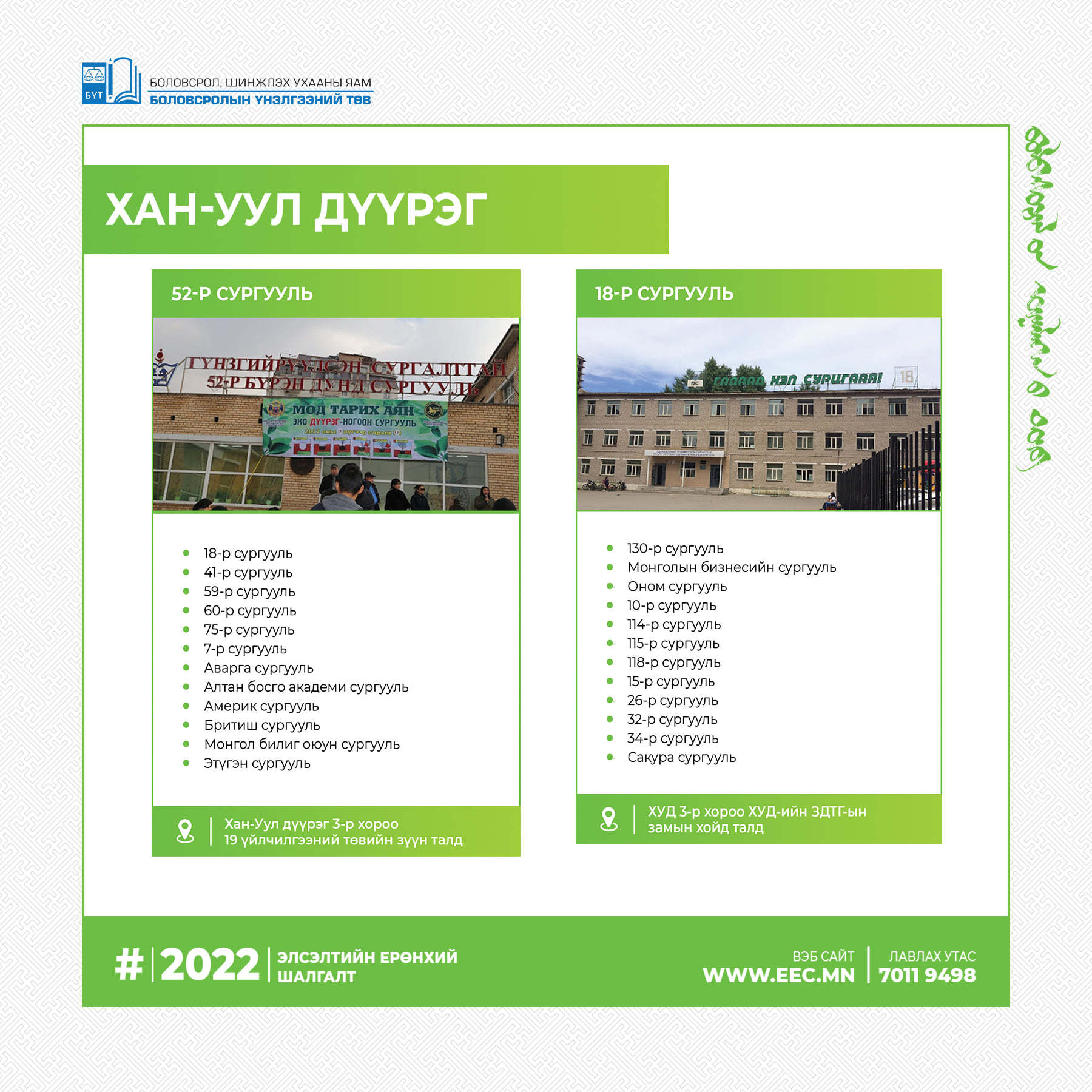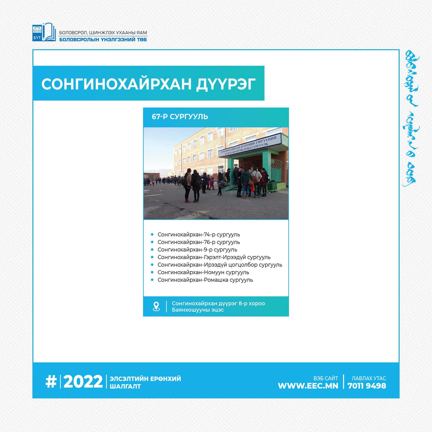 Нийслэлд Монгол хэл, бичгийн шалгалт авах шалгалтын байрыг танилцуулж байна.