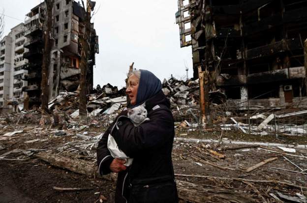 Барууны мэдээллийн агентлагууд Бородянка суурингаас гэрэл зургуудыг дэлхий нийтэд дамжуулсаар байна. Бородянка бол саяхан Оросын цэргүүдээс чөлөөлсөн, Киевийн ойролцоох суурин юм.