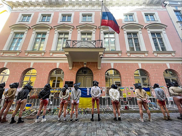 Эстонийн Таллин хотод байх ОХУ-ын Элчин сайдын яамны гадна эстони бүсгүйчүүд эсэргүүцлийн арга хэмжээ зохион байгуулжээ. Тэд Оросын цэргүүд Украины хүүхэд, эмэгтэйчүүдийг хүчирхийлж байгаад анхаарал хандуулах зорилготой байсан гэж "Обозреватель" мэдээлсэн байна.