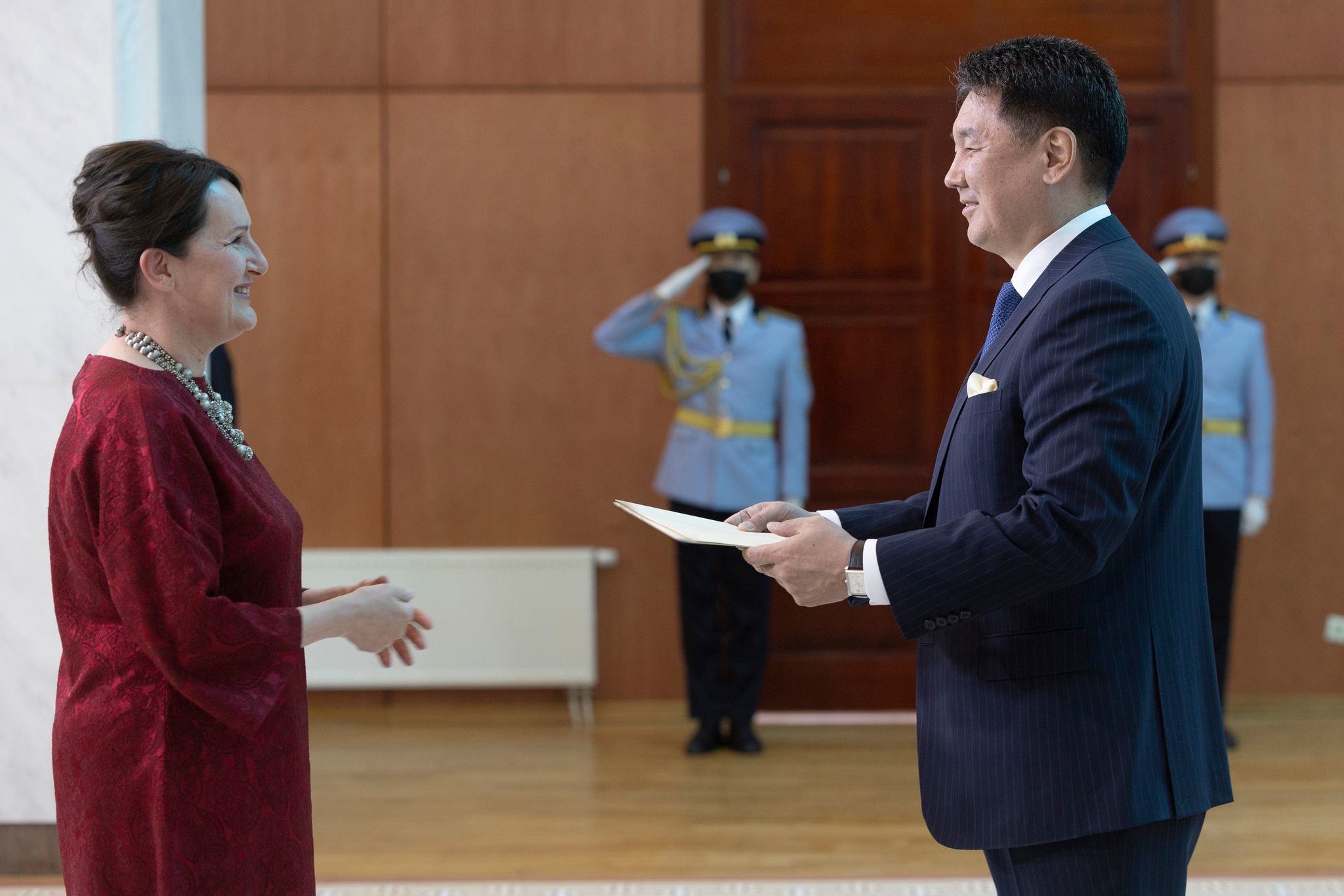 Бүгд Найрамдах Словени Улсаас Монгол Улсад суух Элчин сайд, хатагтай Аленко Сухадолник Монгол Улсын Ерөнхийлөгч У.Хүрэлсүхэд Итгэмжлэх жуух бичгээ барив.