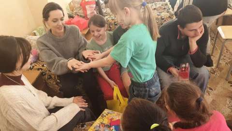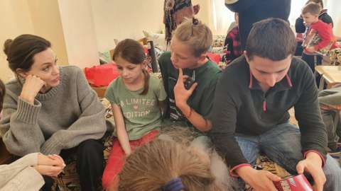 Анжелина Жоли Украинд хүмүүнлэгийн ажил хийж байна