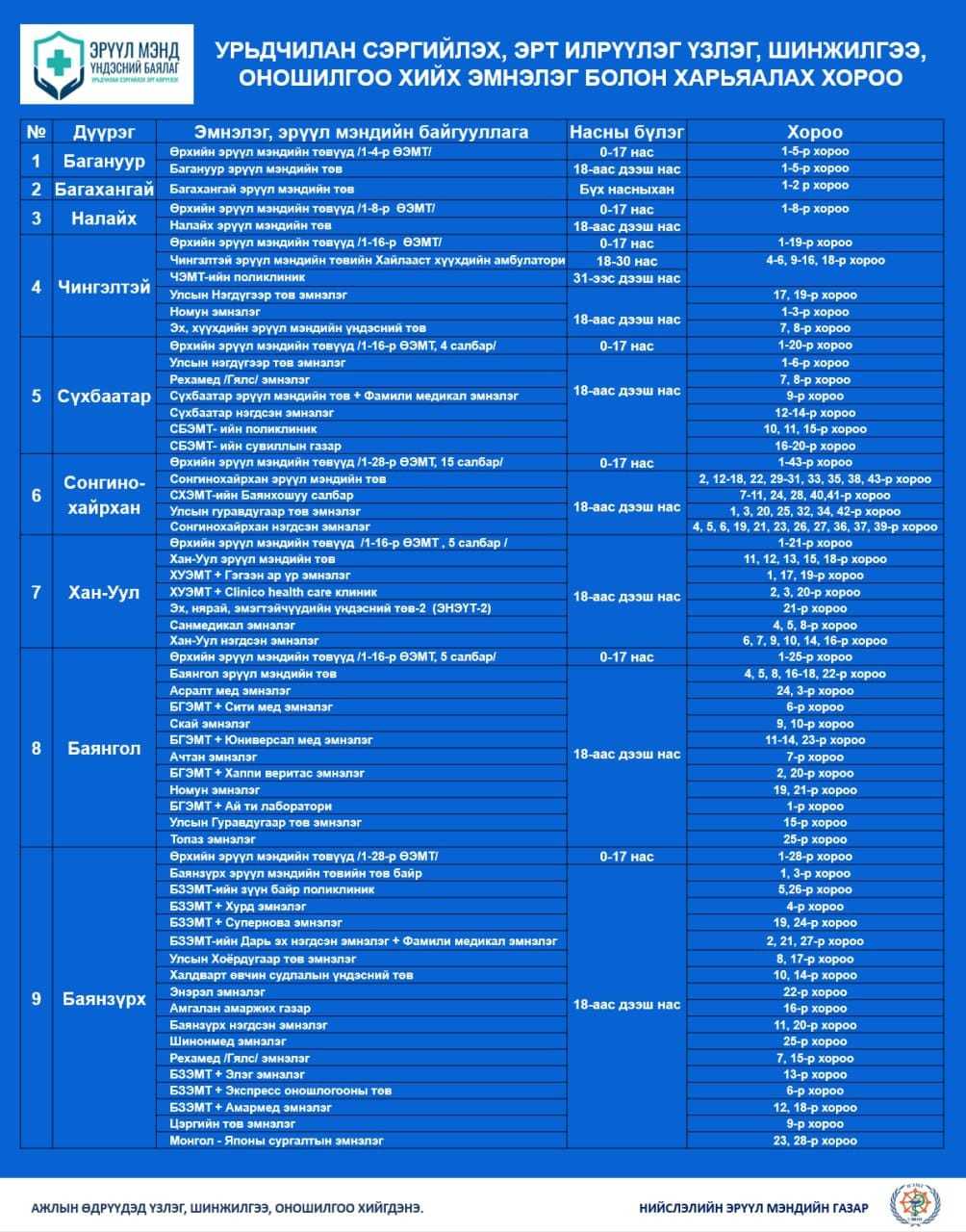 ЖАГСААЛТ: Урьдчилан сэргийлэх үзлэг, оношлогоо хийх эмнэлгүүд