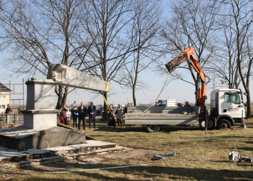 2022 оны гуравдугаар сарын есний өдөр Польшийн Кошалин оршуулгын газарт хууль бусаар буулгасан хөшөө.