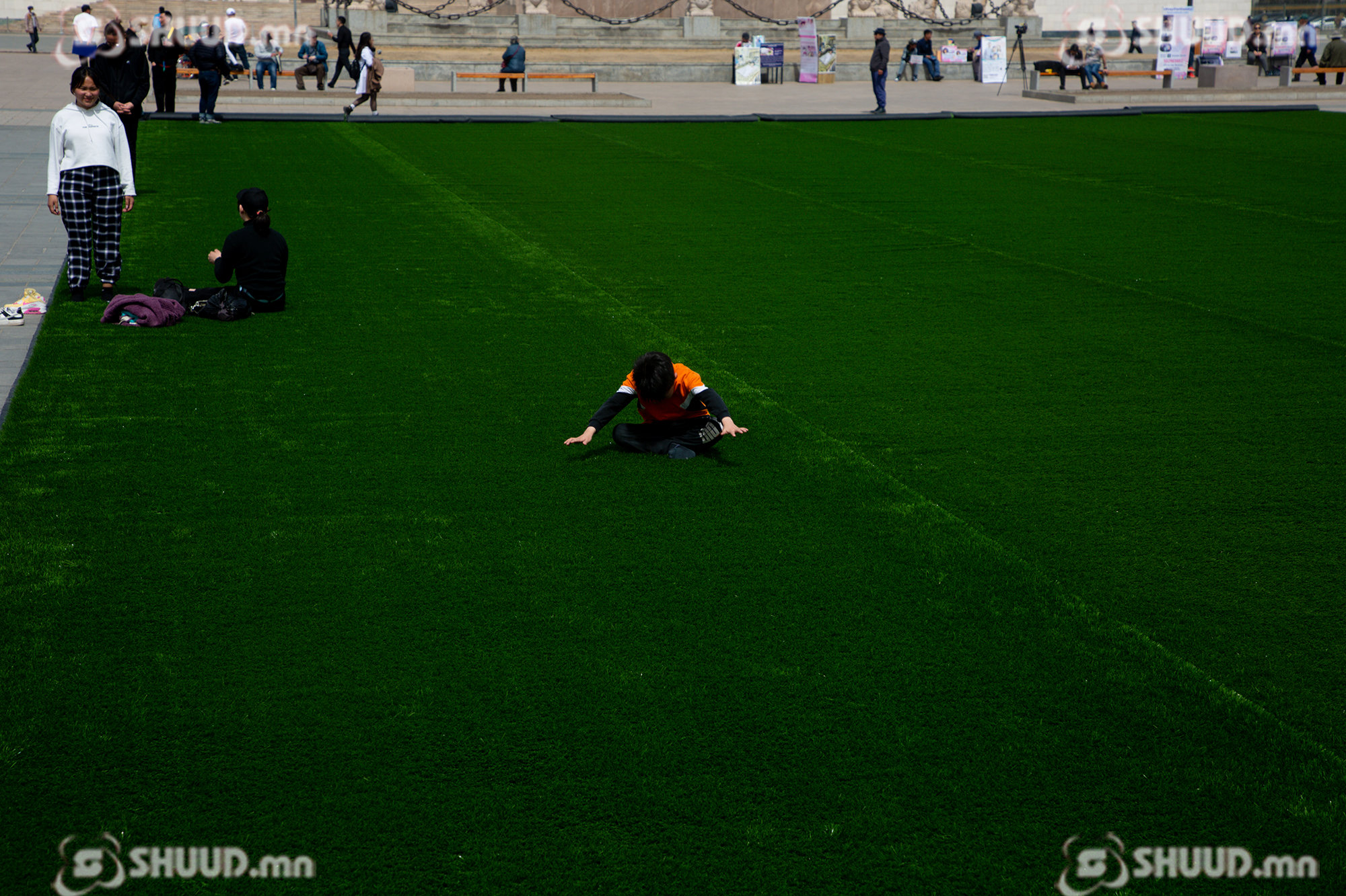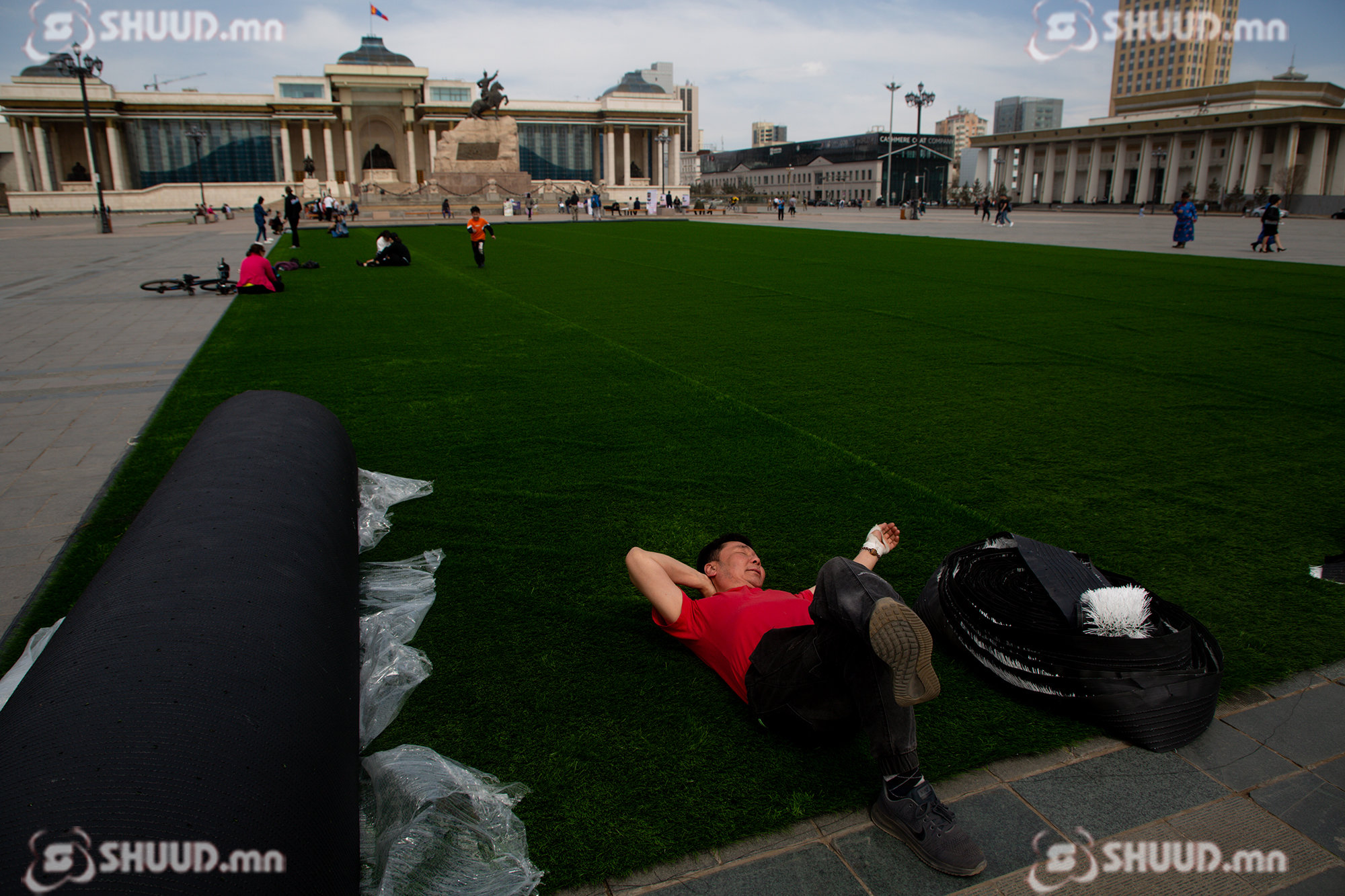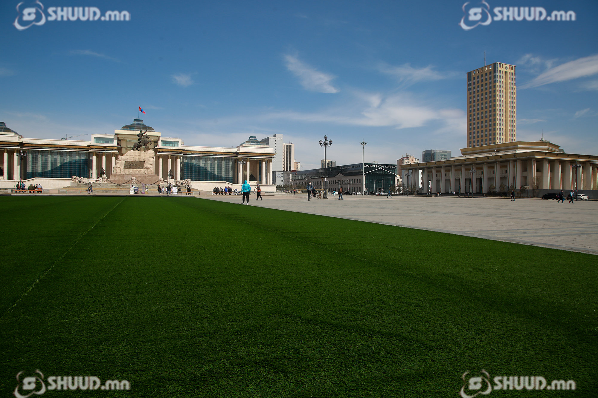 ФОТО: Сүхбаатарын талбайд хөлбөмбөгийн талбай засжээ