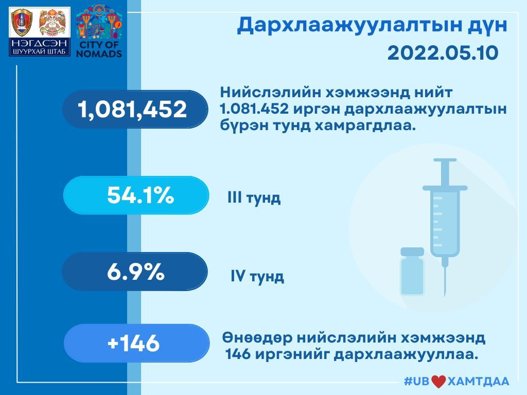 Нийслэлийн хэмжээнд нийт 1.081.452 иргэн дархлаажуулалтын бүрэн тунд хамрагдлаа.