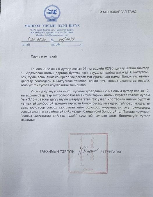 Дээд шүүх: Х.Баттулгаас тайлбар авах шаардлагагүй