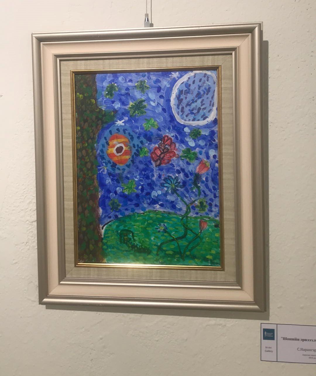 12 настай С.Нарангэрэл охин гурван жилийн хөдөлмөрөө үзэсгэлэн болгон өчигдөр М арт галерейд дэлгэлээ. Тэрбээр анхны бие даасан үзэсгэлэнгээ “Гэгээ” хэмээн нэрлэжээ. Бага ангийн багшийнхаа өгсөн даалгаварын дагуу “Халбаганы хаант улс” гэсэн үлгэр зохиосноор мөрөөдлийнхөө эхлэлийг тавьсан түүнтэй цөөн хором ярилцлаа.