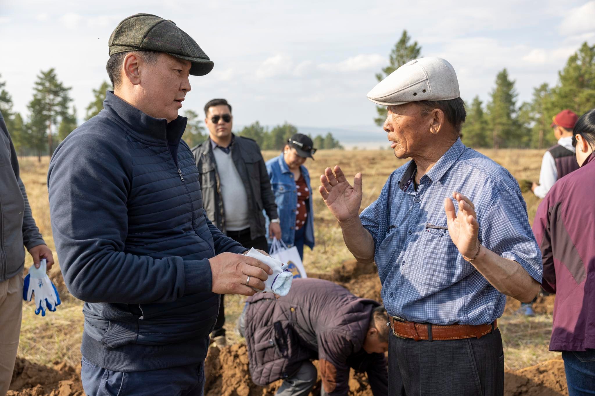 Ерөнхийлөгч мөн Ерөө суманд үйл ажиллагаа явуулдаг ойн мэргэжлийн байгууллага, ойн санг гэрээгээр эзэмшигч нөхөрлөл, иргэдийн төлөөллийн хамт тариалангийн талбайн ойн зурвас байгуулах ажилд оролцлоо.