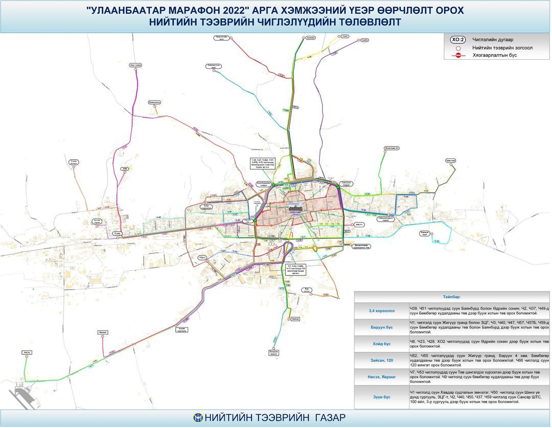 Улаанбаатар марафоны үеэр автобусны чиглэл өөрчлөгдөж, троллейбус зогсоно