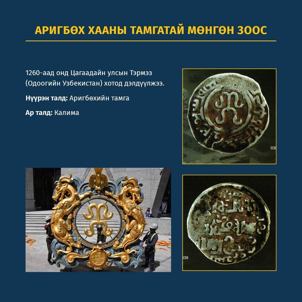 За лав Өгээдэй хааныхаа Дэгрээ тамгын бид Увсад одоо ч гэсэн хэрэглэж байна. Аригбөхийн тамга хуучны баядуудын симбол навчин хээнээс санаа авч хийгдсэн юм шиг.