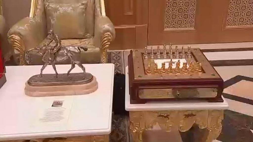 Гурбангулы Бердымухамедовын төрсөн өдрөөр нь Путин хоёр сэлэм, шатар, морьтны баримал бэлэглэсэн байна. Шатрыг Оросын Златоустын уран гартнууд урласан бол хоёр сэлэмний нэг нь шинэ, нөгөө нь хуучин эдлэл аж.