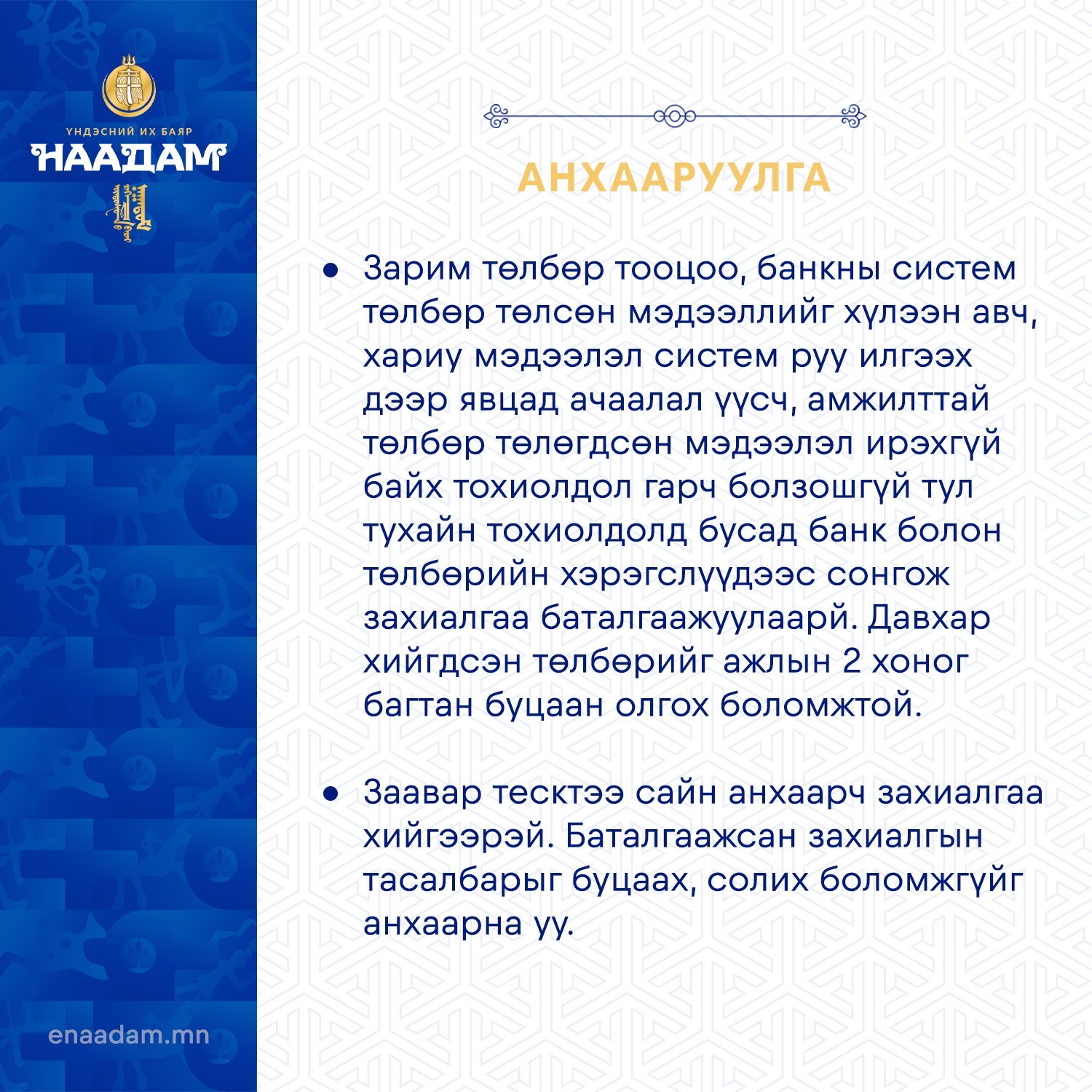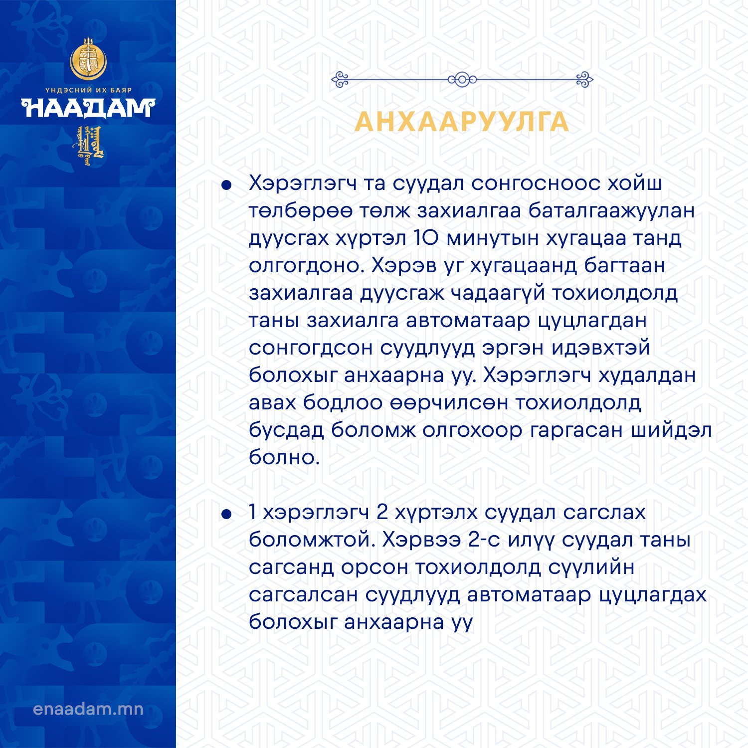 Наадмын тасалбарыг цахимаар худалдан авахад анхаарах зүйлс