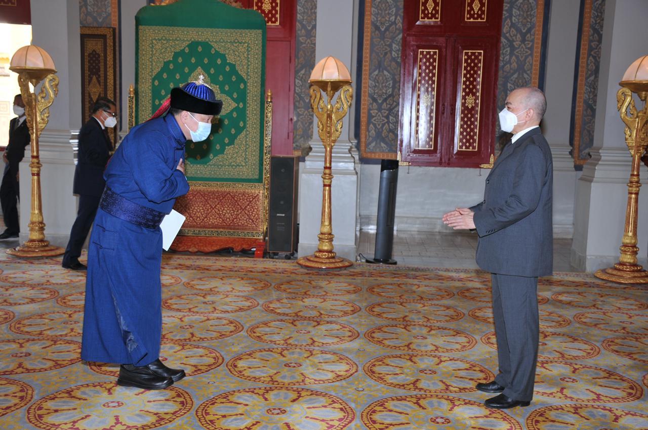 Элчин сайд Ж.Бямбасүрэн Монгол Улсын Ерөнхийлөгч У.Хүрэлсүхийн мэндчилгээг Камбожийн Хаант Улсын Хаан Нородом Сихамони-д уламжилж, энэ жил Камбожийн Хаант Улс АСЕАН-г даргалаж байгаад баяр хүргэж, амжилт хүсэхийн сацуу хоёр орны харилцаа хамтын ажиллагааг хөгжүүлэхийн төлөө хүчин чармайлт гарган ажиллахаа нотлов.