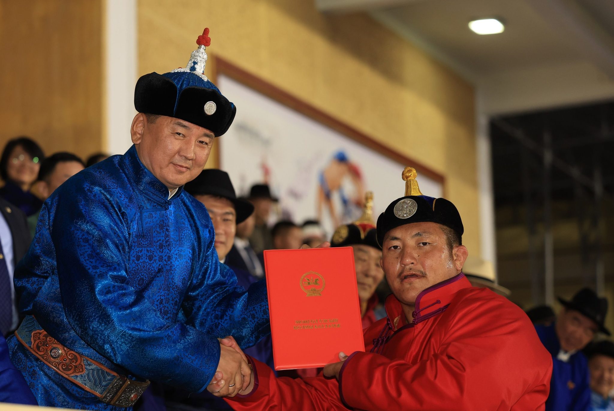 Монгол Улсын Ерөнхийлөгч Ухнаагийн Хүрэлсүх өнөөдөр зарлиг гаргаж, Тулгар төрийн 2230, 2231, Их Монгол Улс байгуулагдсаны 815, 816, Үндэсний эрх чөлөө, тусгаар тогтнолоо сэргээн мандуулсны 110, 111, Ардын хувьсгалын 100, 101 жилийн ойн Улсын баяр наадмын Үндэсний бөхийн барилдаанд долоо давж “Улсын заан” цолны болзол хангасан бөхчүүдэд цол олголоо.