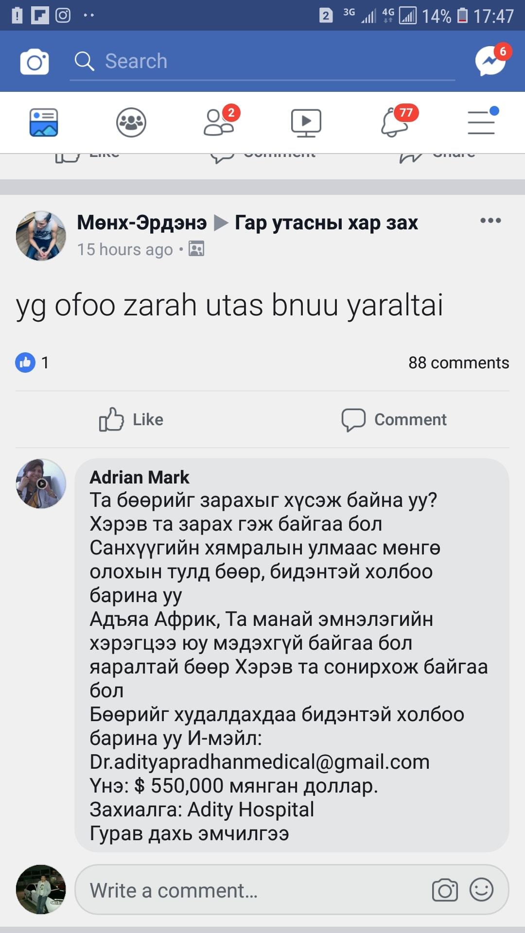 “Бөөр худалдаж авна” гэх зар олон улсын цахим луйвар байж болзошгүй