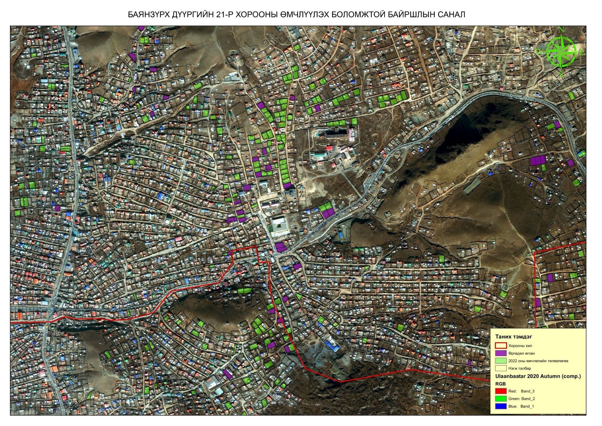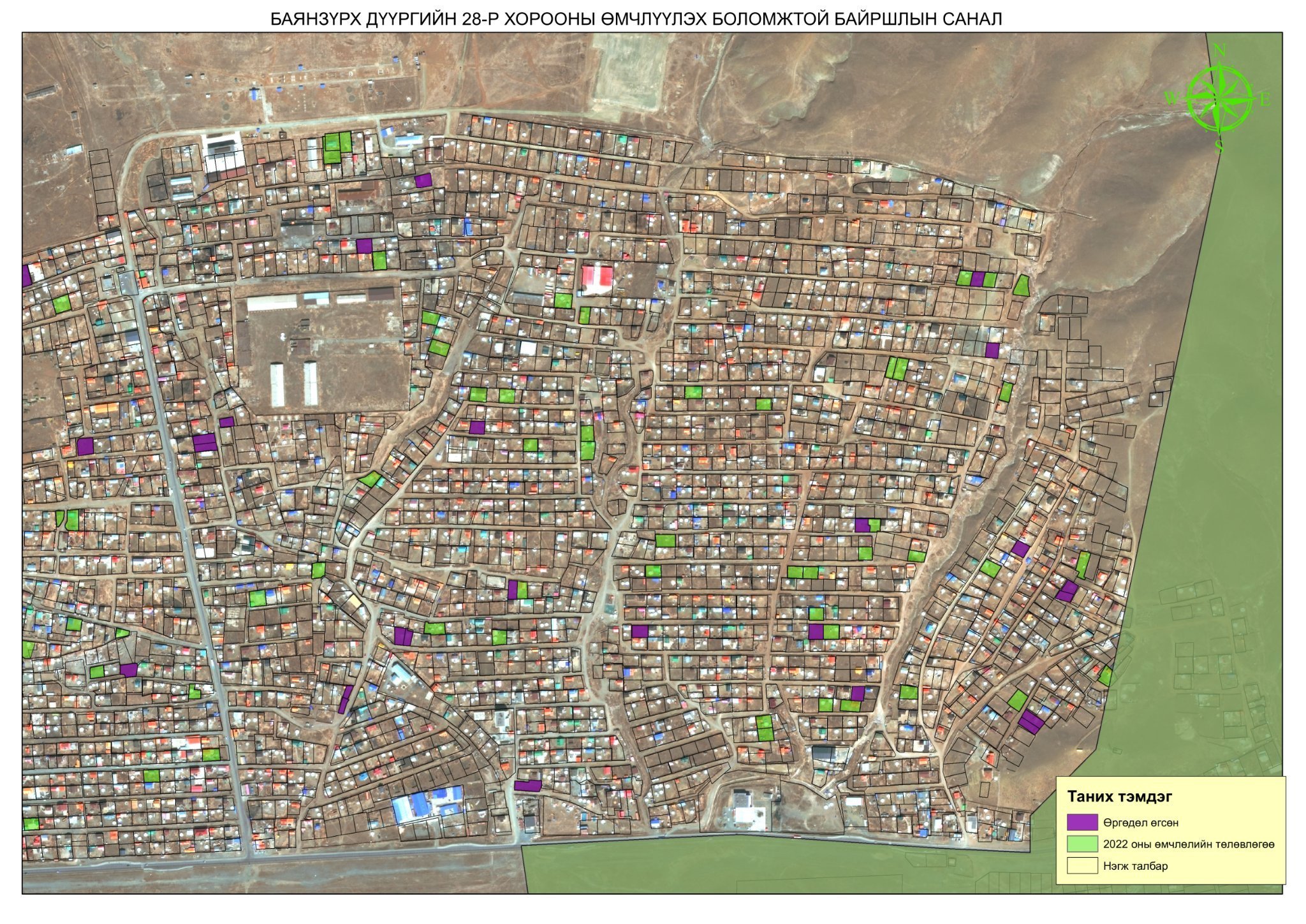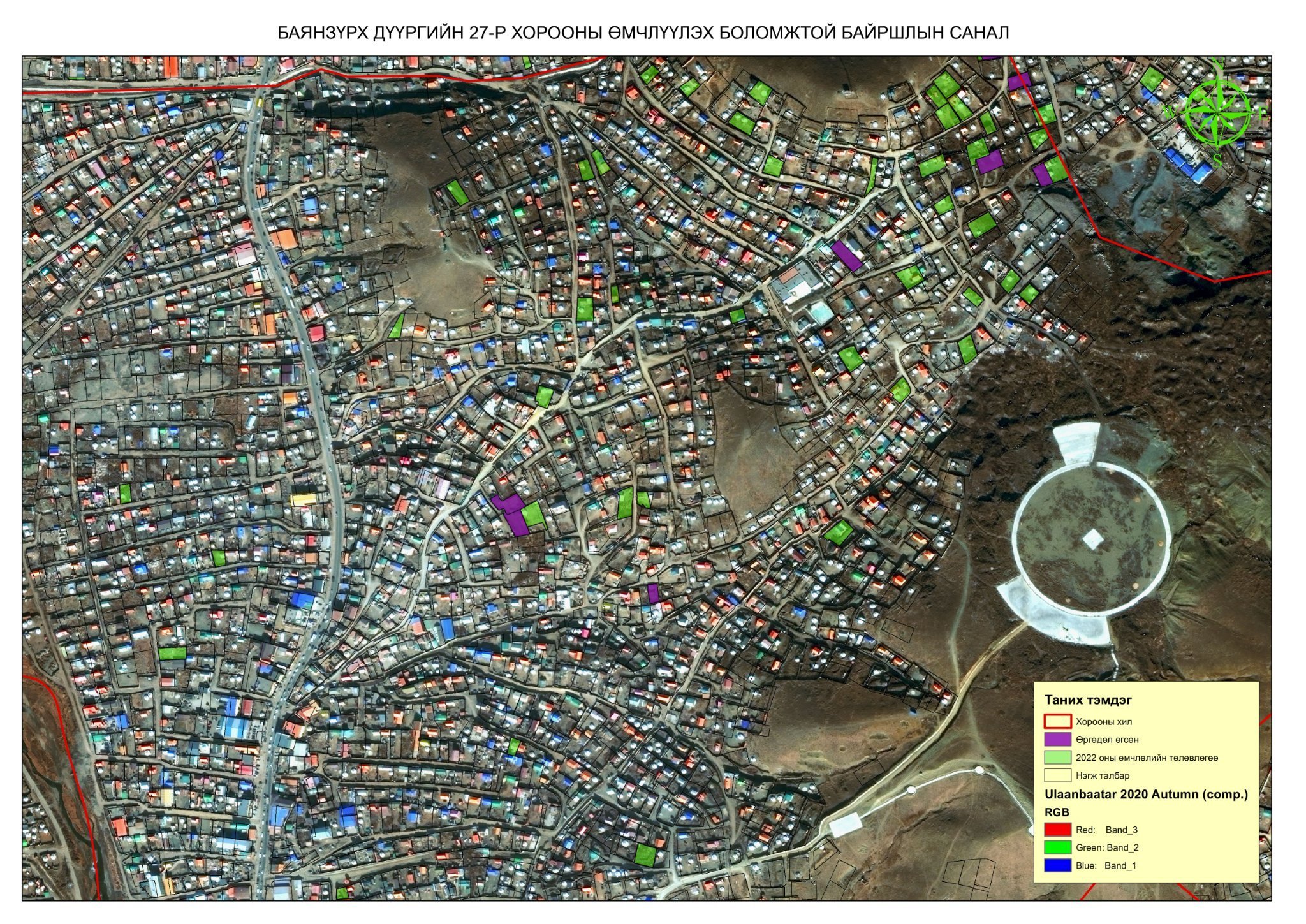 Монгол Улсын иргэнд газар өмчлүүлэх тухай хууль, Монгол Улсын Засгийн газрын 121 дүгээр тогтоол, НИТХ-ын 11/33 дугаар тогтоолыг хэрэгжүүлэх зорилгоор нийслэлийн 2022 оны газар зохион байгуулалтын төлөвлөгөөнд 1249 иргэний эзэмшиж буй газрыг өмчлүүлэхээр тусгажээ.